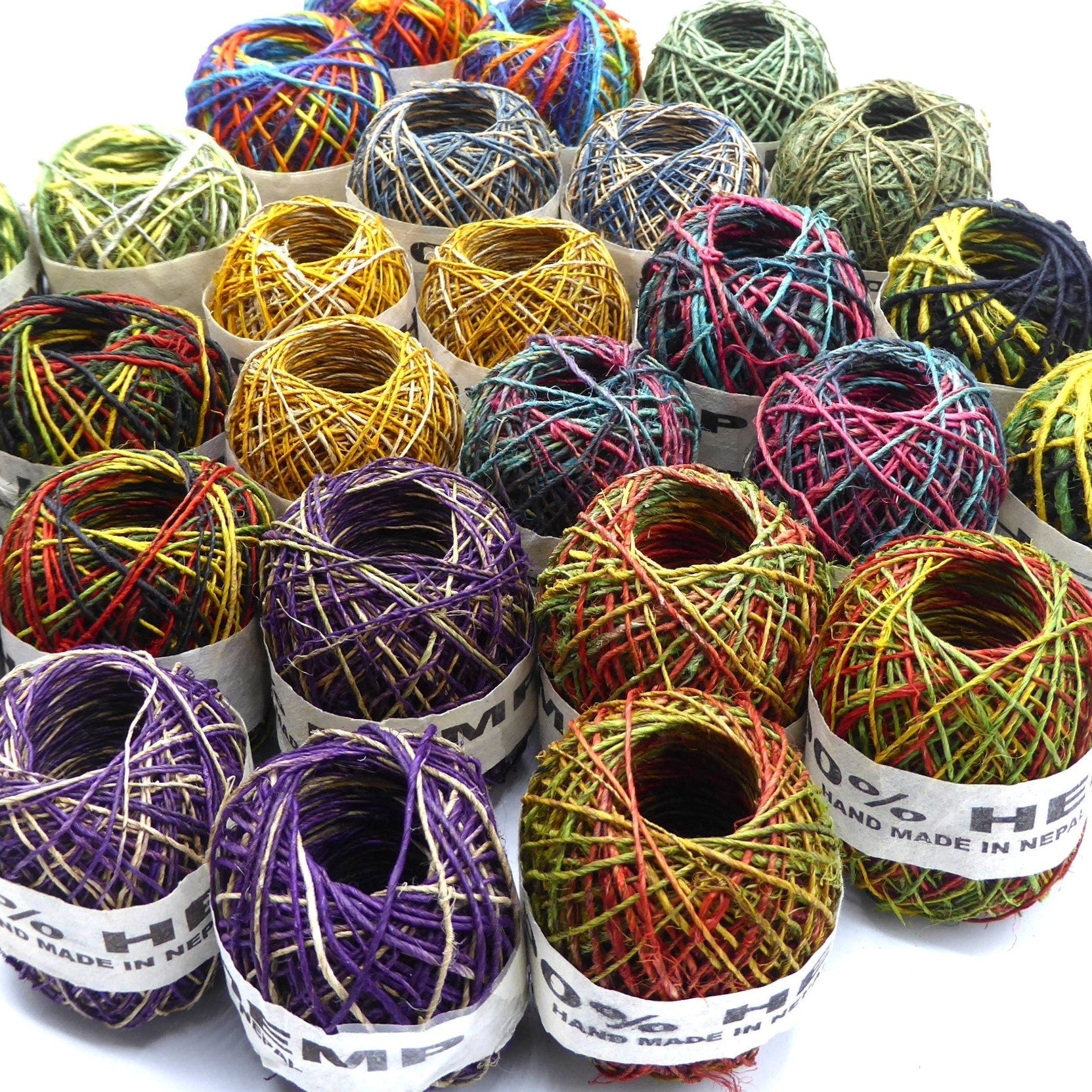20gram balls of hemp twine sold in a pack of 3 or pack of 5, £7.20 for a pack of 3 and £12.00 for a pack of 5. Measuring 40metres in length on average.