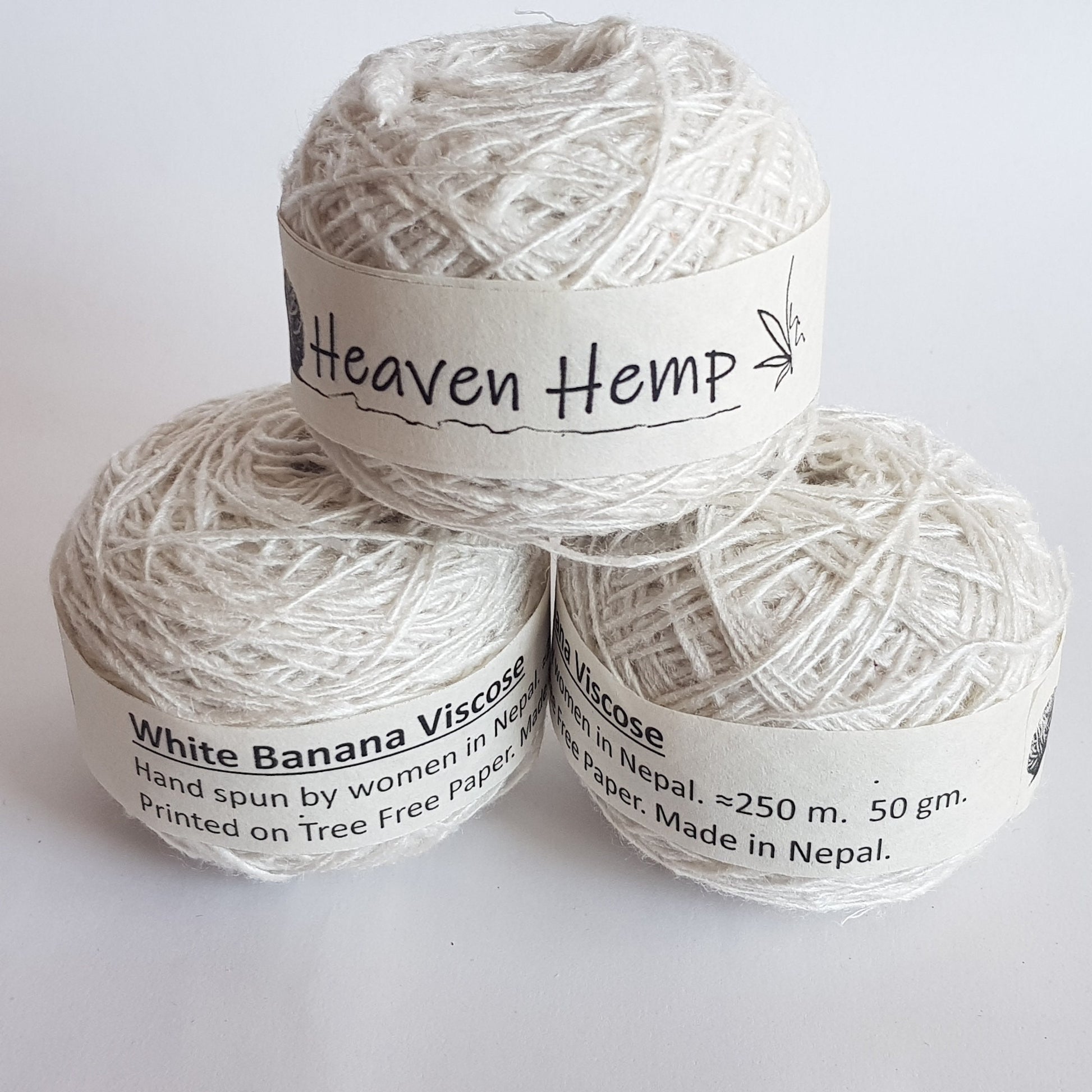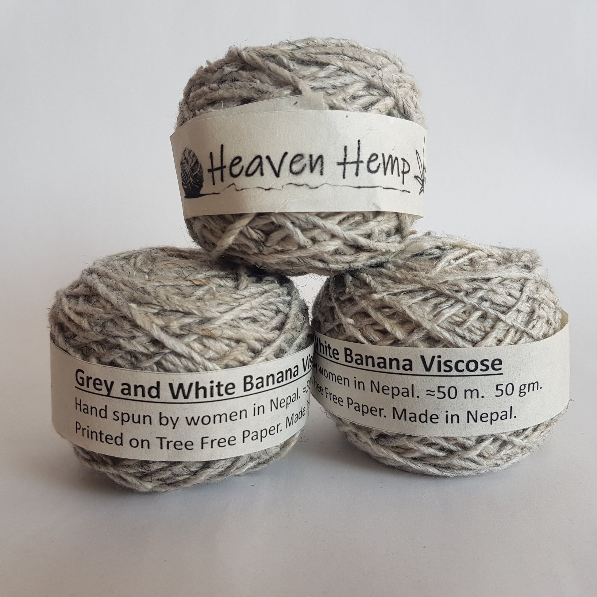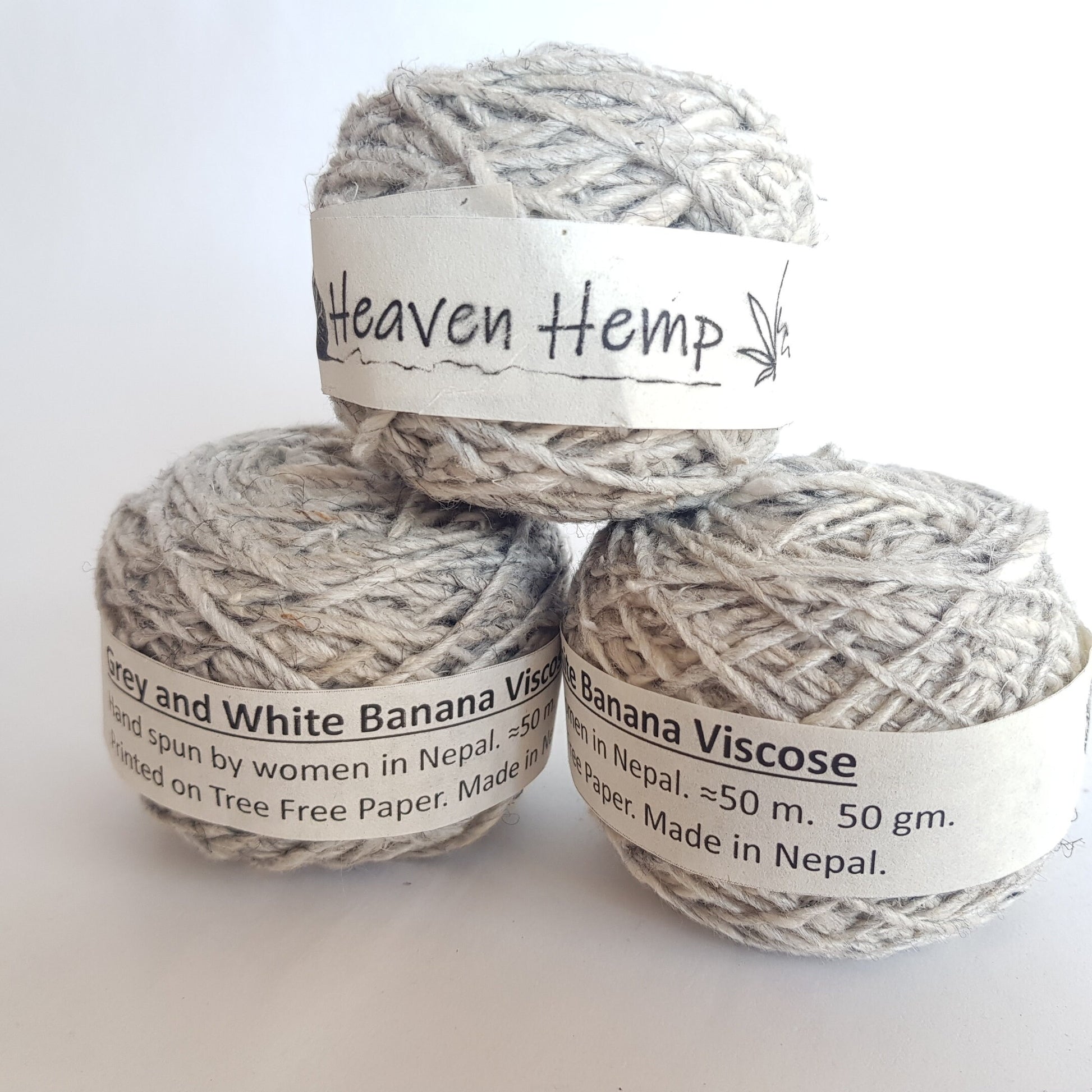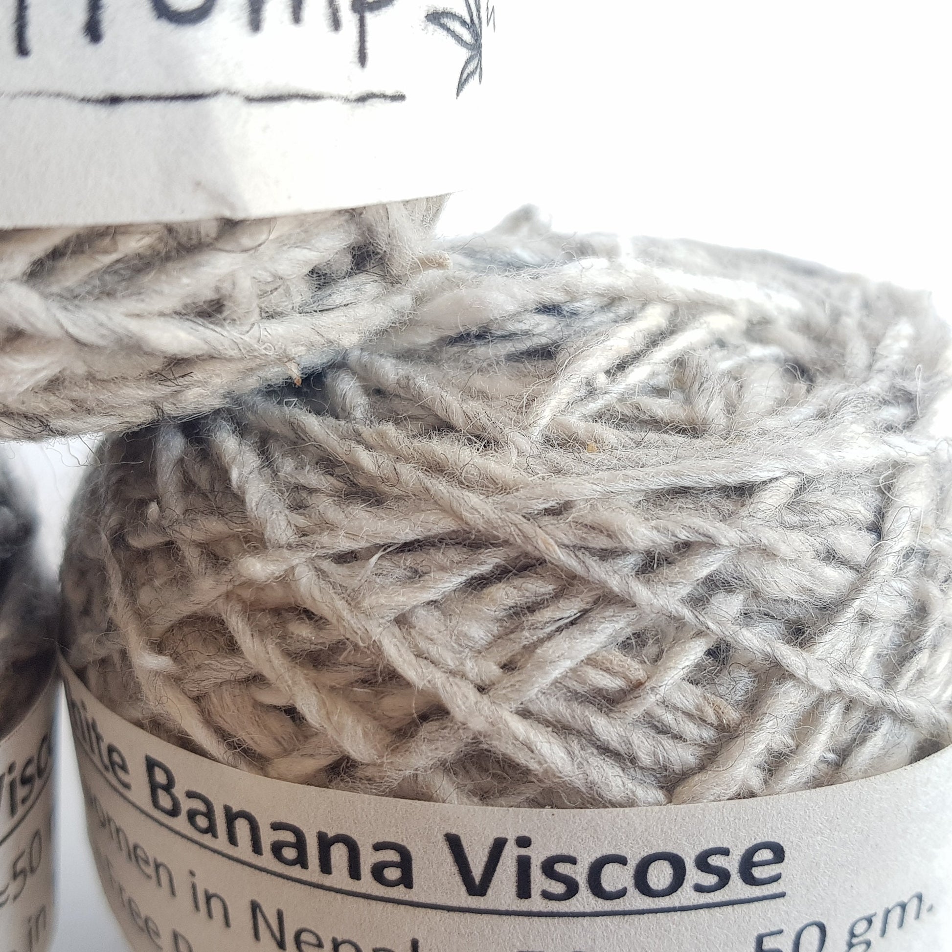 Silky soft banana yarn handspun with love in Nepal. Choose from 'Grey and White' or 'White' Yarn. Great for knitting, macrame, weaving, crochet etc.