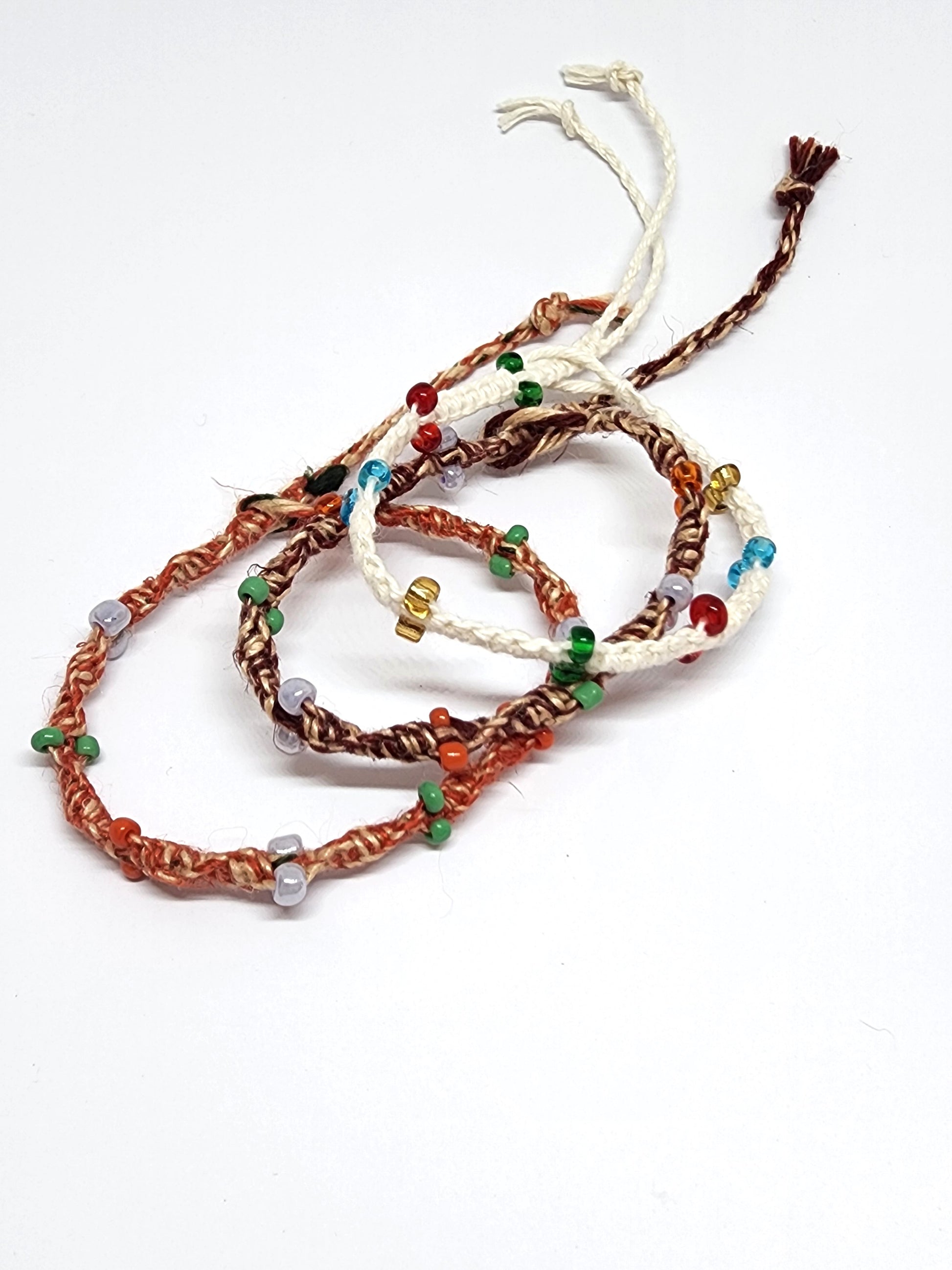 These hand knotted bracelets are perfect as an accessory for the eco-conscious shopper. They also work great as gifts for all your friends or to celebrate your 4th anniversary with some lovely linen. Made to fit most adult wrist sizes.