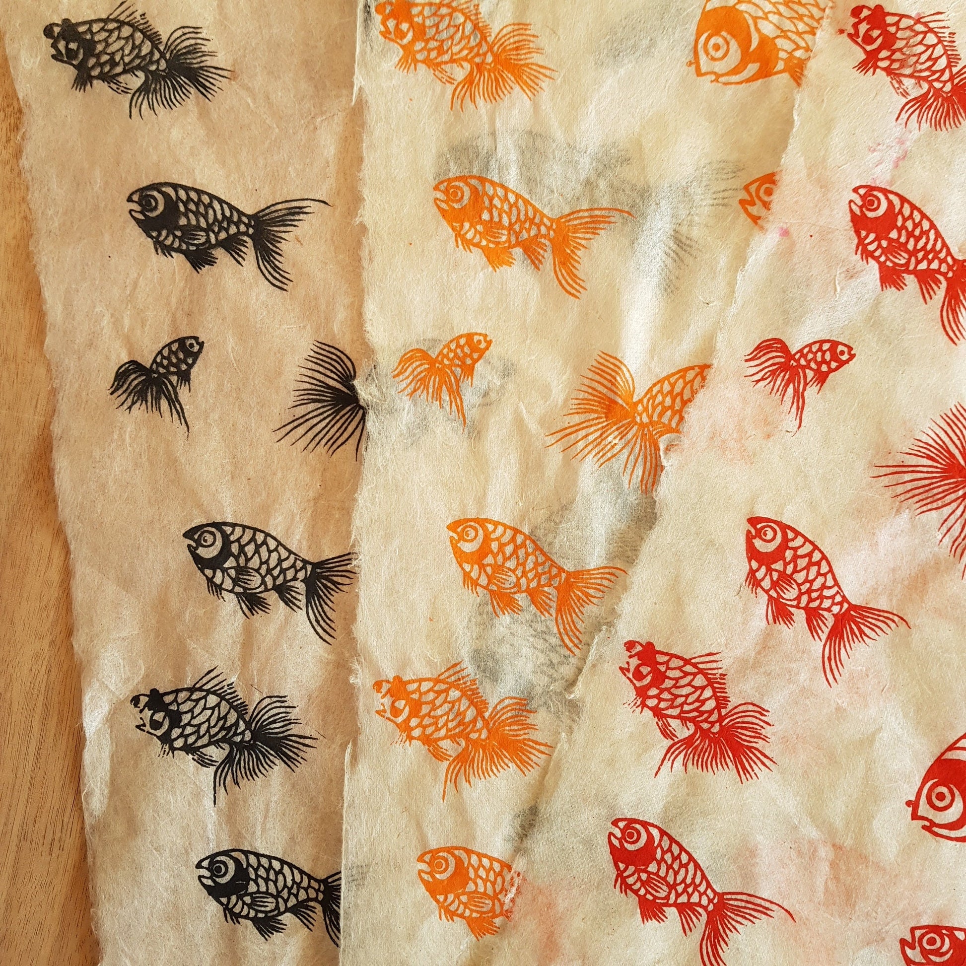 Black Tropical Goldfish Print on Hemp Tissue Paper
