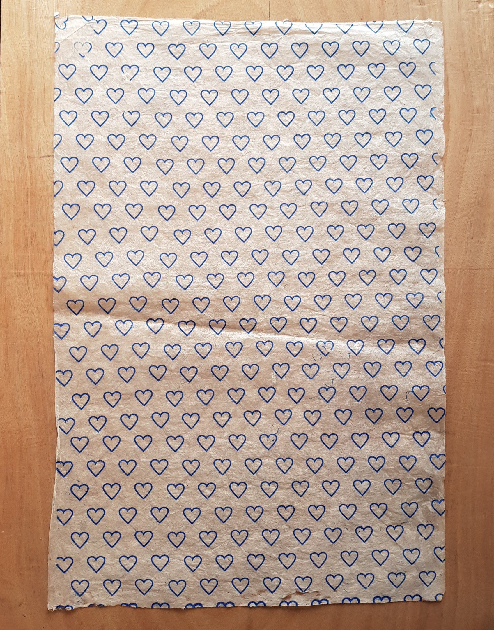 Handmade natural hemp tissue paper silk screen printed by our artisans in Kathmandu.