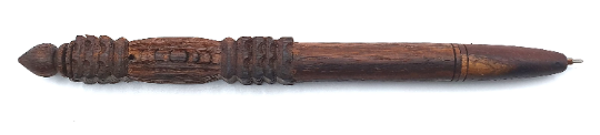 Unique handcrafted wooden ballpoint pen which is also refillable. Hand carved in Nepal from the wood of the Sal tree, a hardwood that is said to last 1000 years in Nepal. Oiled with cold pressed hemp seed oil to condition it and give it a healthy sheen.