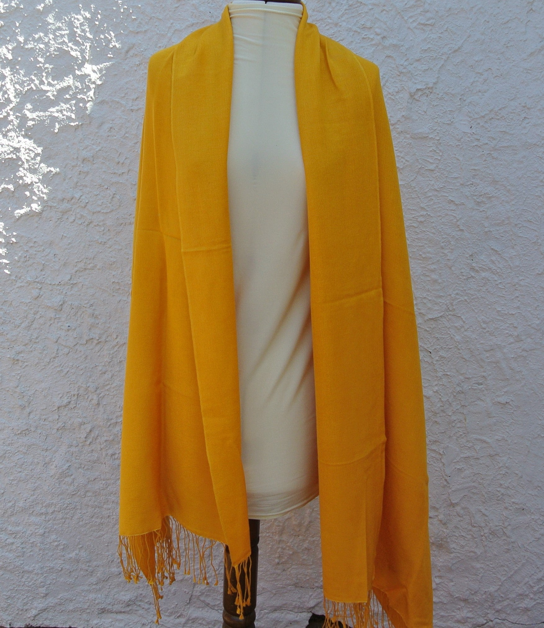 Our Pashminas are handloomed in Nepal using only the finest quality cashmere. It is hand woven with silk, and individually dried and dyed, and finally fringed with twisted silk tassels. We prefer a combination of pashmina and silk (70% pashmina and 30% silk) because the silk adds strength and shine to the garment. Delicate and soft to touch, it feels luxurious on your skin. Accessories made from pashmina are convenient because of their warmth and compact size when folded.