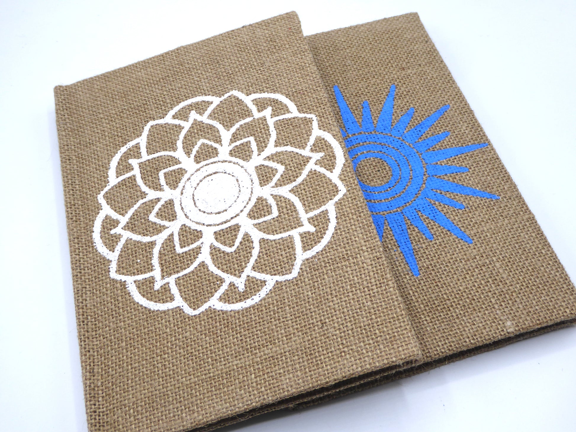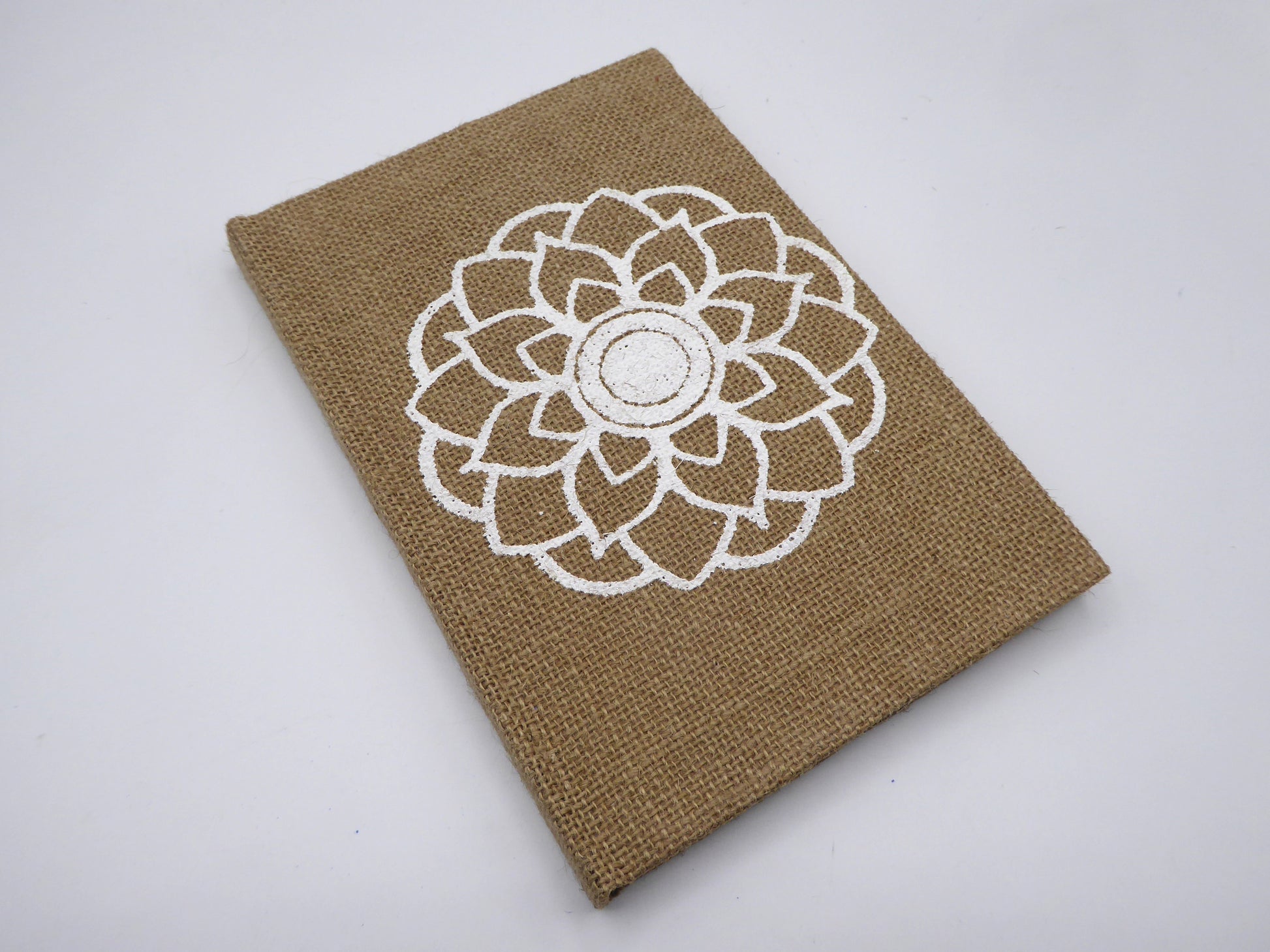Handbook A5 Lokta Notebook, Hard Cover. Jute with Mandala or Sunshine Print.