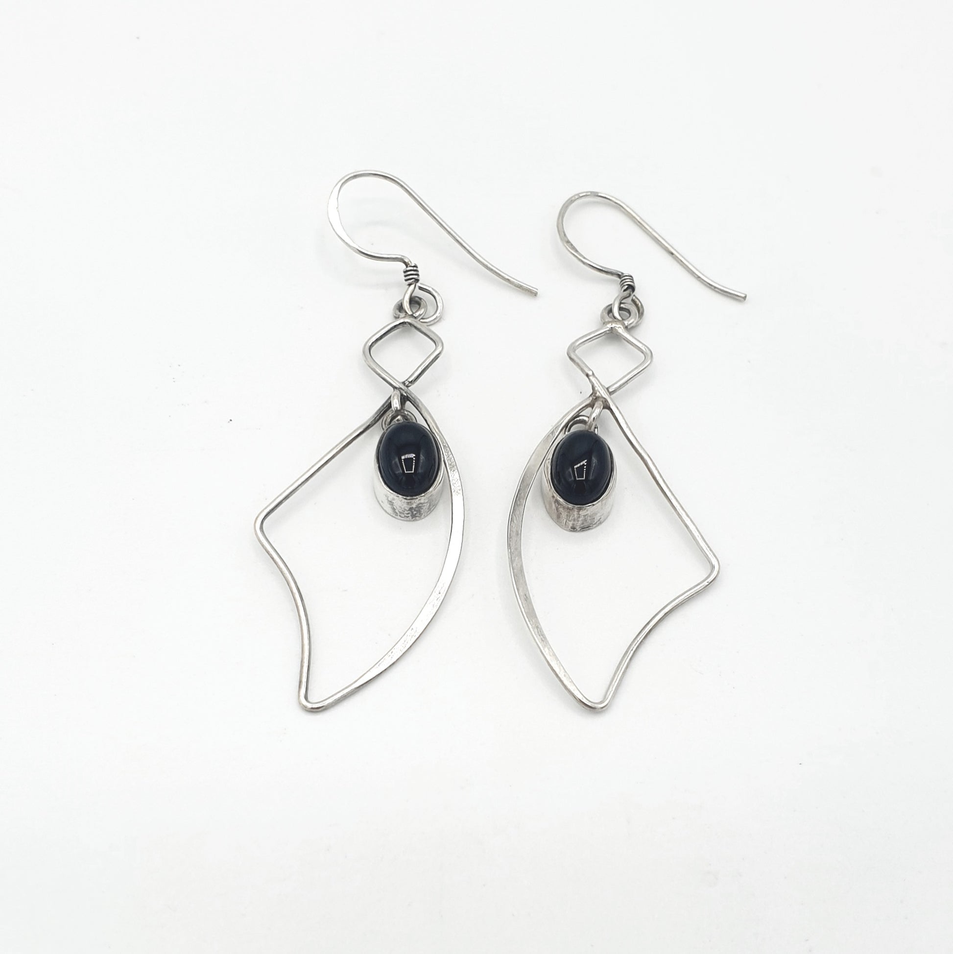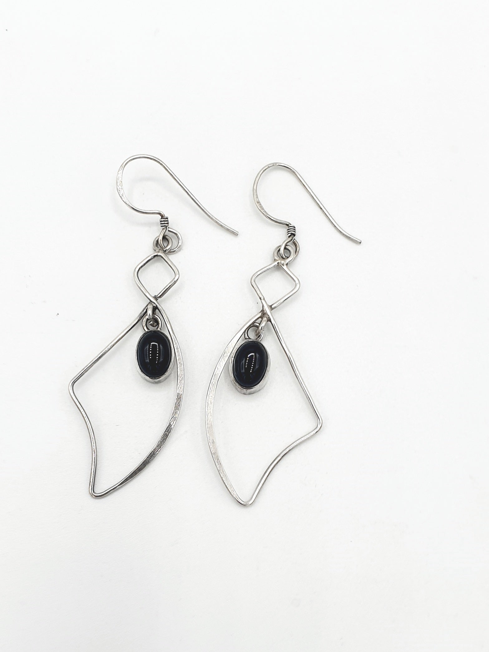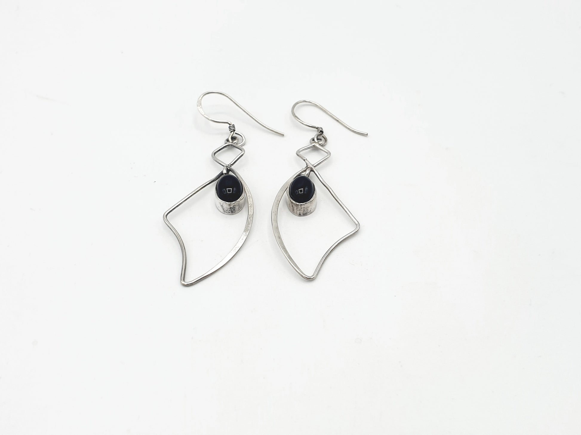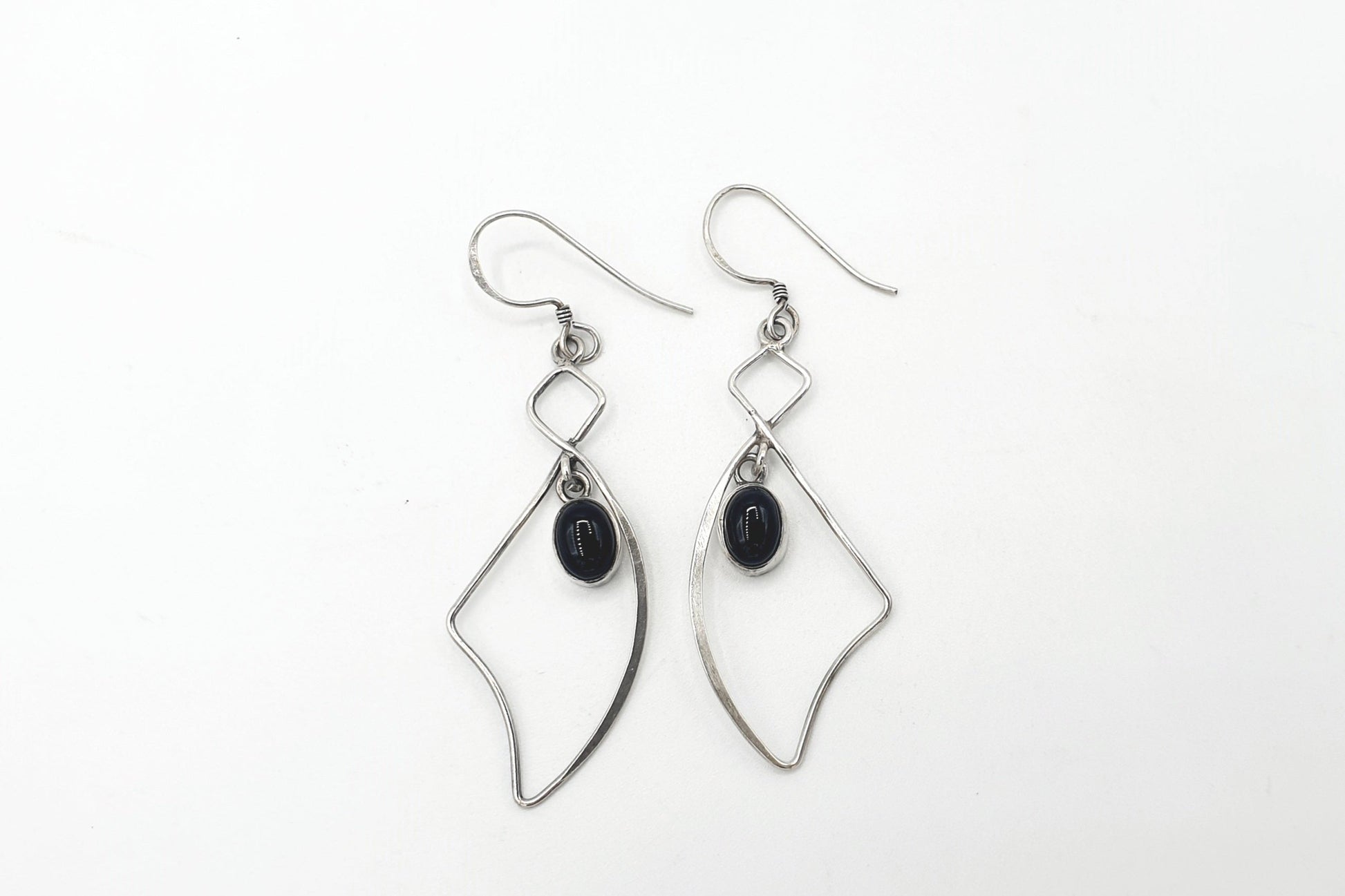 Handmade 925 Sterling Silver Black Onyx Earrings; Minimalist design