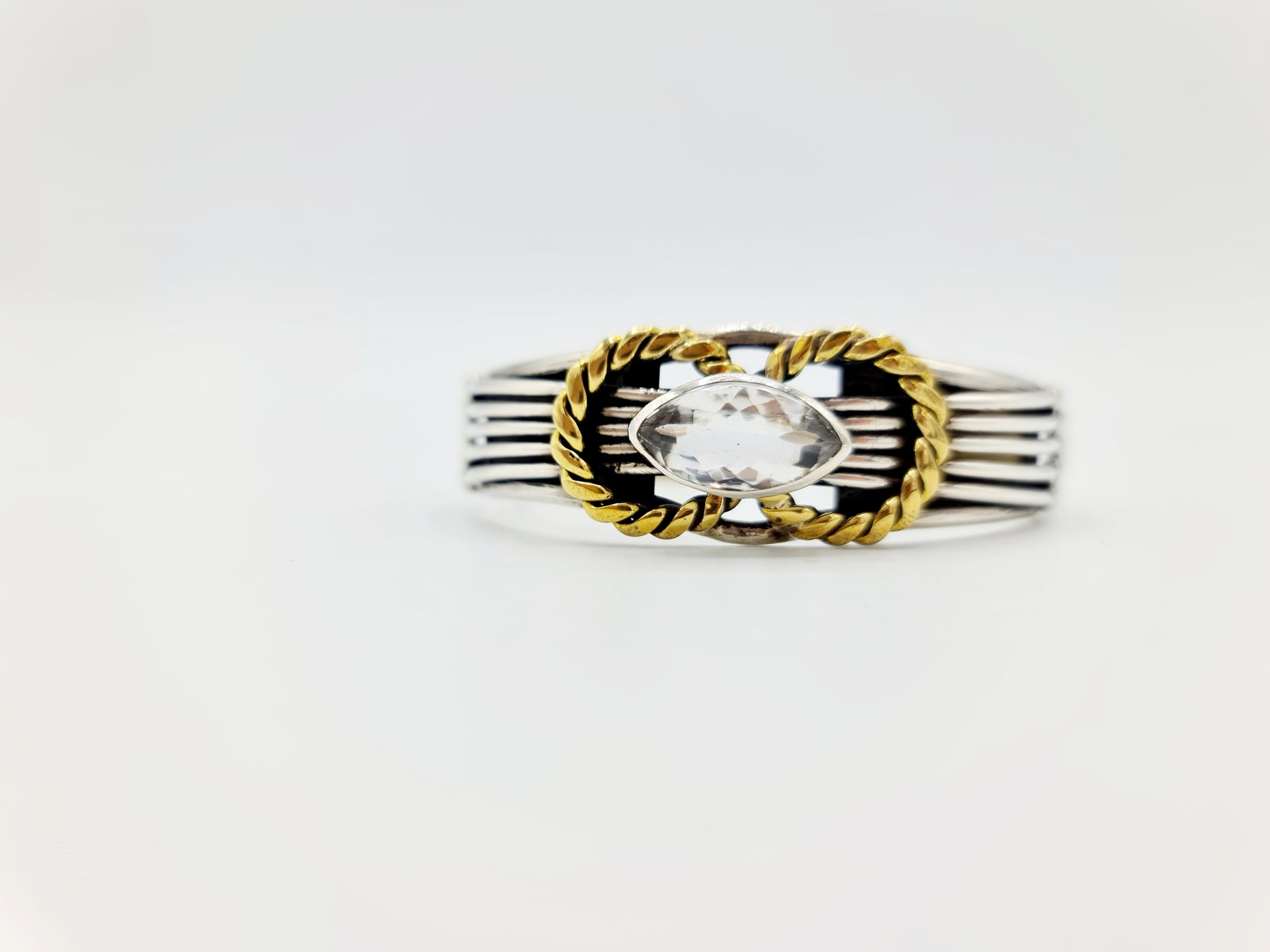Handmade 925 Sterling Silver Crystal Cuff/Bracelet; ''Shrivatsa''