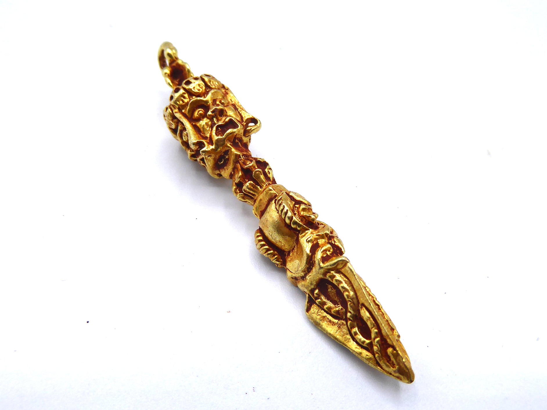 Dagger shaped pendant, handmade in Nepal, 65x13mm. Gold Plated. Sold as pendant only.