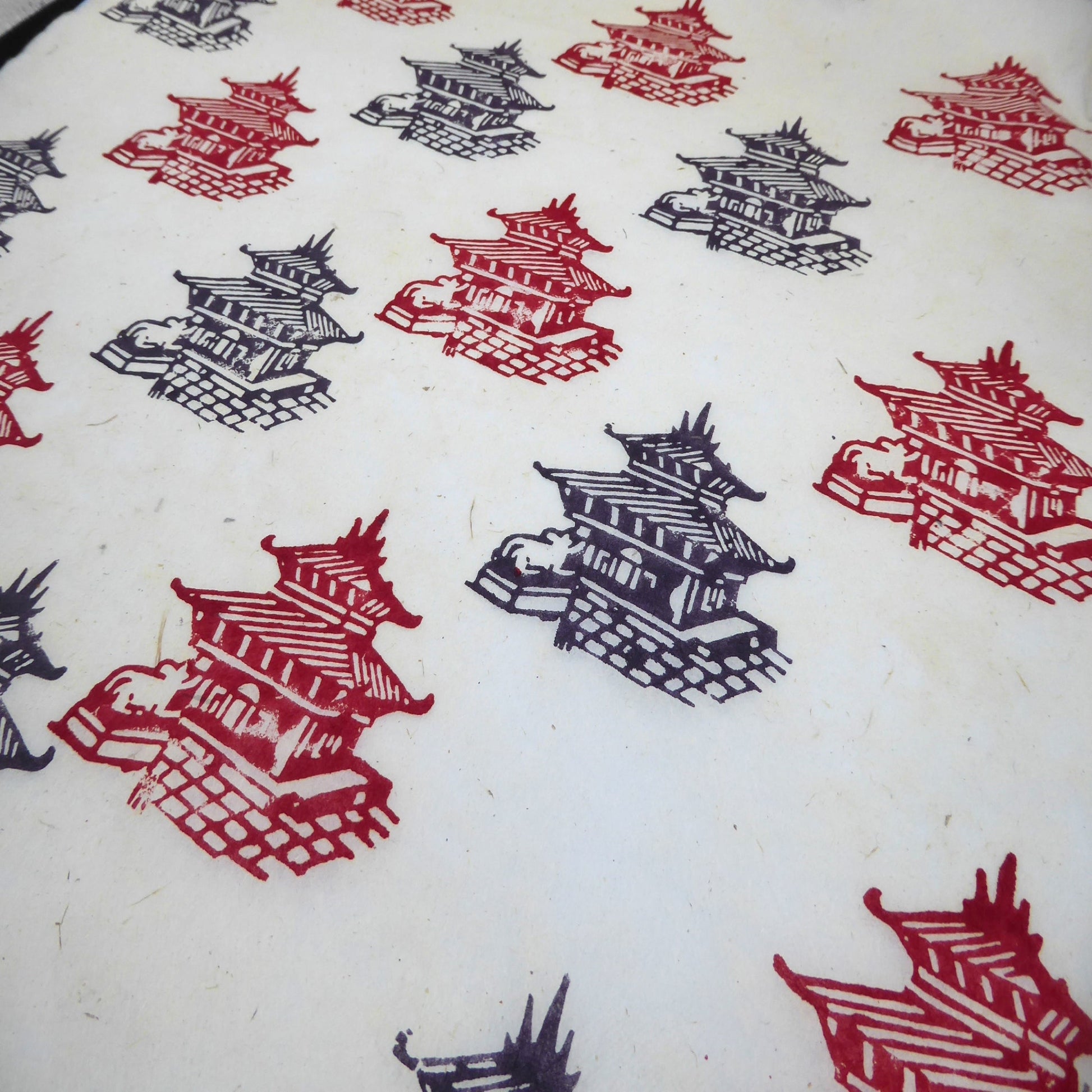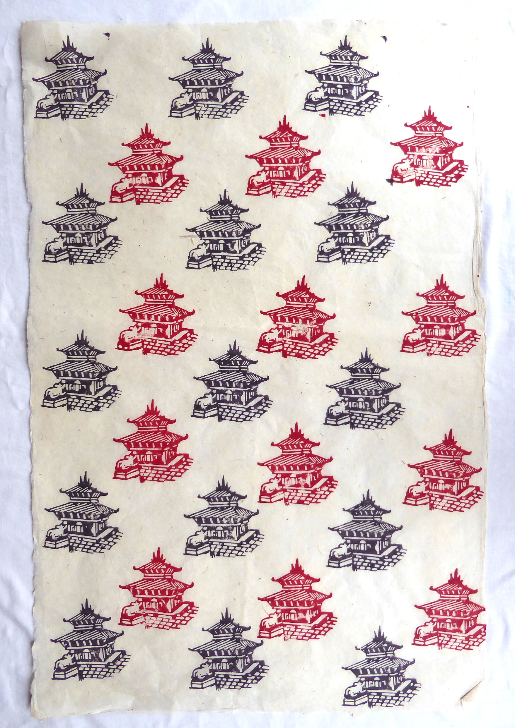 Pagoda Temple Block Printed on Lokta Paper, Handmade, Tree Free & Sustainable