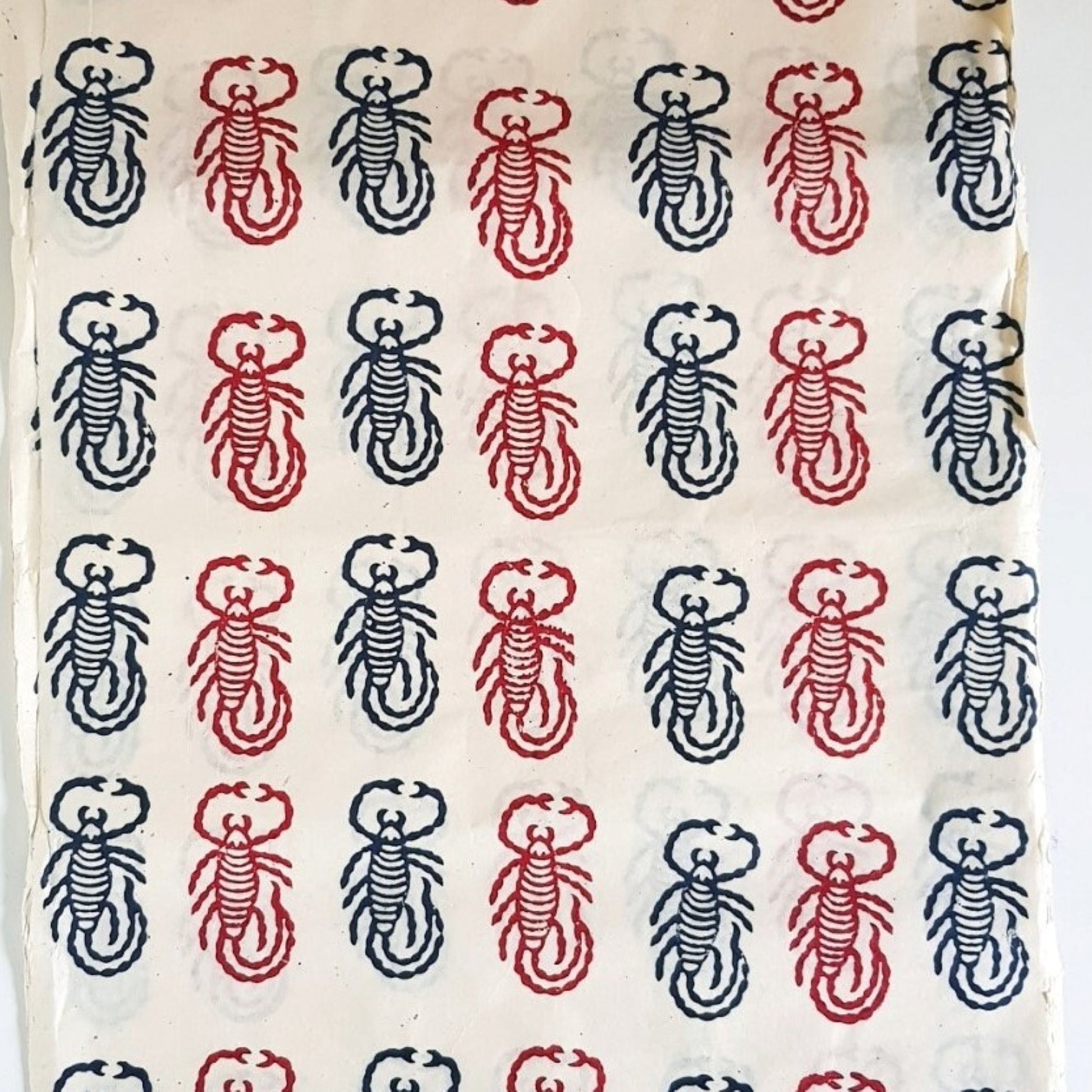 Scorpion Block Printed on Lokta Paper, Handmade, Tree Free & Sustainable