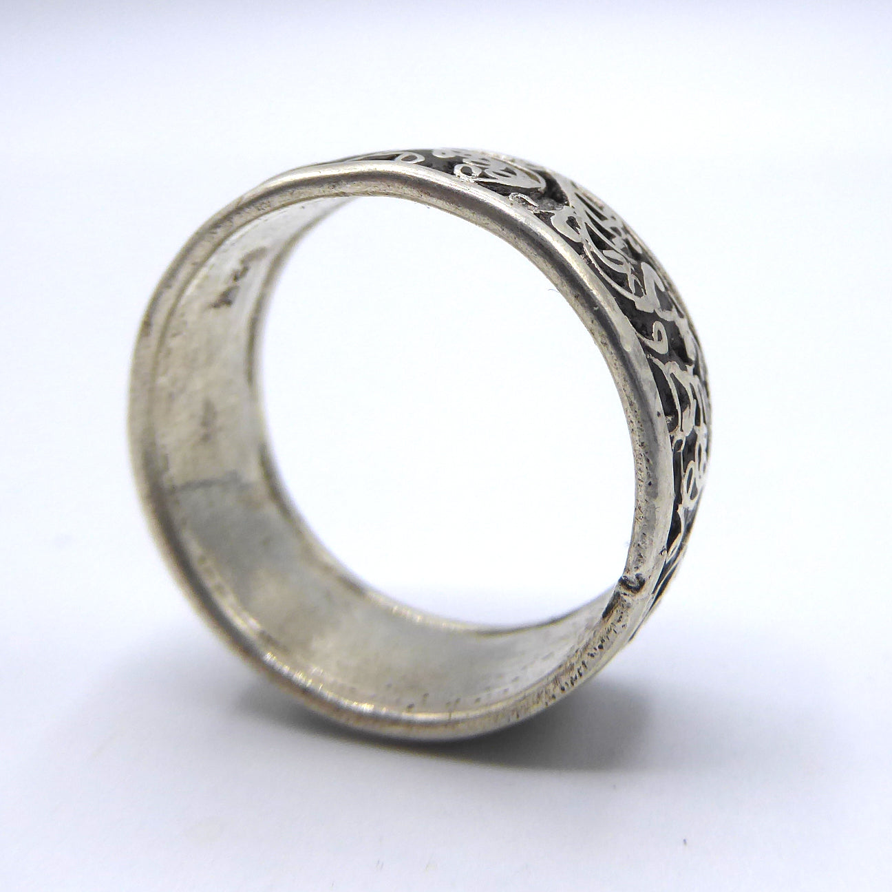 This sweet floral silver ring is perfect as a gift for your partner, friend or daughter. Made from hammered sterling silver intricately cut with a wire saw. Please note this is not machine made! All detailing is done entirely by hand, it takes many days to make these beautiful rings and a lot of love and skill has gone into making them. Photographed is the desk and tools with which the rings are made.