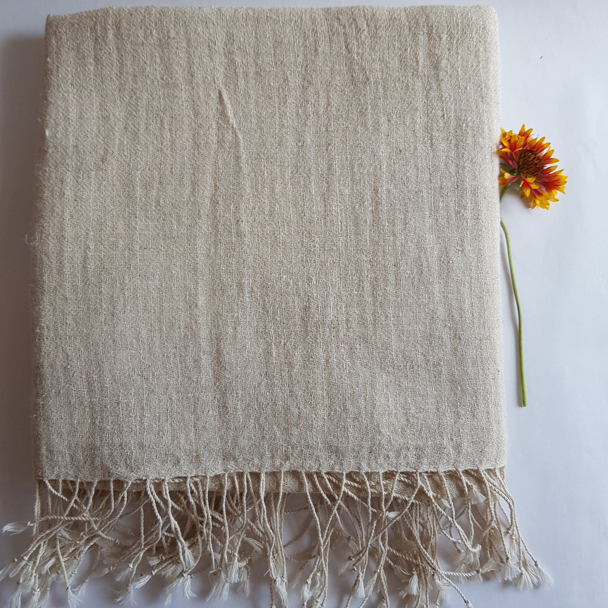 Beautiful handloomed shawl made from hemp cotton with love in the Himalayas. The tassels have also been individually hand knotted. Soft and comfortable to wear as either a scarf, shawl or wrap due to it's generous size.