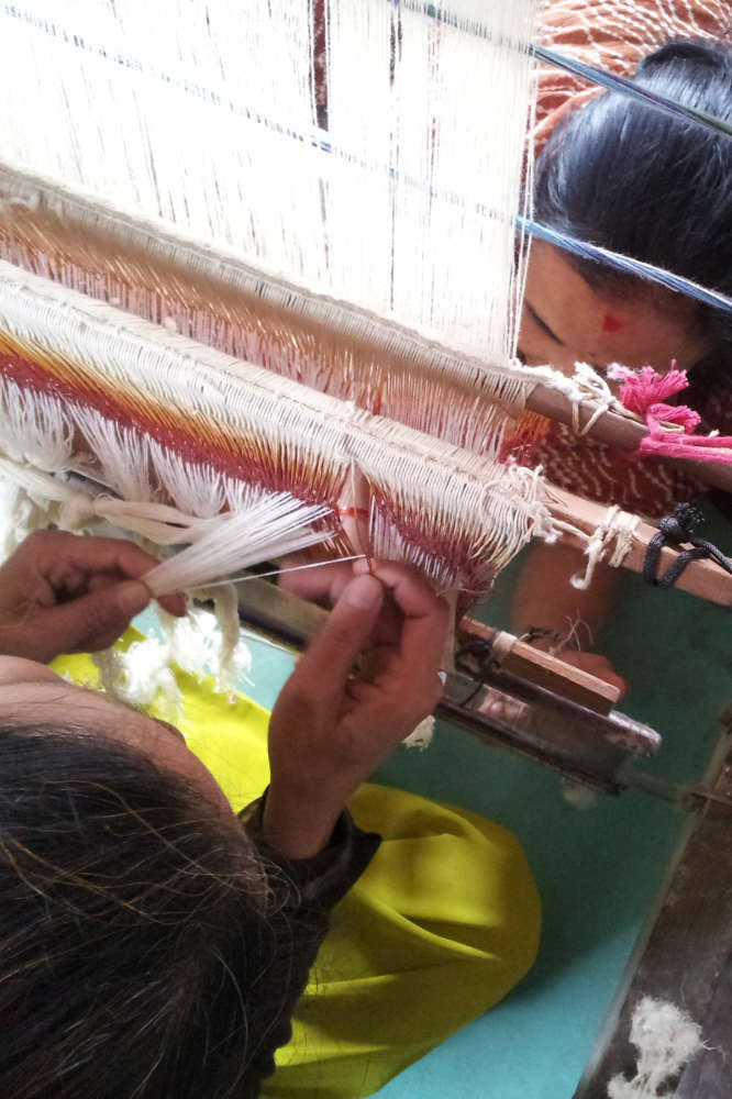 > Handmade on a traditional jacquard handloom (our expert weavers take about 1 day to weave 1.5 metres of textile)