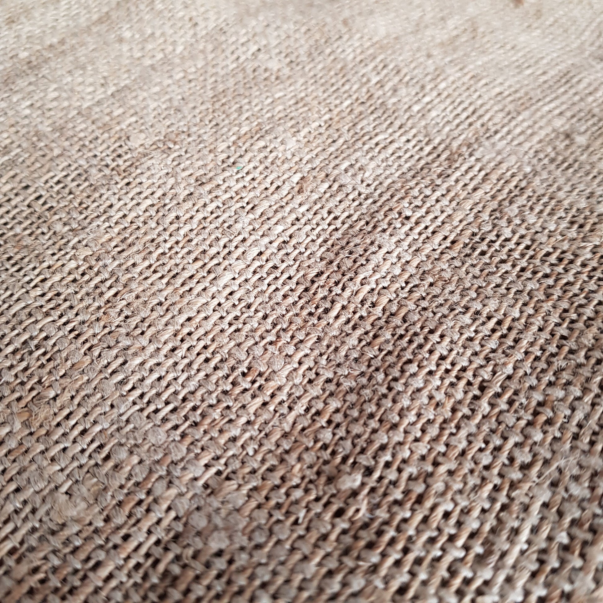 More about Wild Nepali Hemp… Drawn by tooth and spindle method where the fibres are separated by teeth and is held on to a hand held spindle. It takes 10 days' work to make one kilogramme of yarn. After the end of the rainy season villagers leave their farms to gather hemp, the plants are cut above the ground without disturbing the soil. The plant then grows back with the next rains. The fibrous inner bark is stripped from the plant and boiled in water and wood ash for about three hours and then left to simmer overnight. The plant material can then be beaten and the fibre removed. It is then rubbed with soil containing mica, which lubricates the yarn and makes separating and spinning the fibres easier. The fibre is dried in the sun and teased and is ready for spinning. This is done using a hand spindle indoors. When the weather no longer permits anyone to work outside in the fields then time is spent sitting indoors and making yarn.