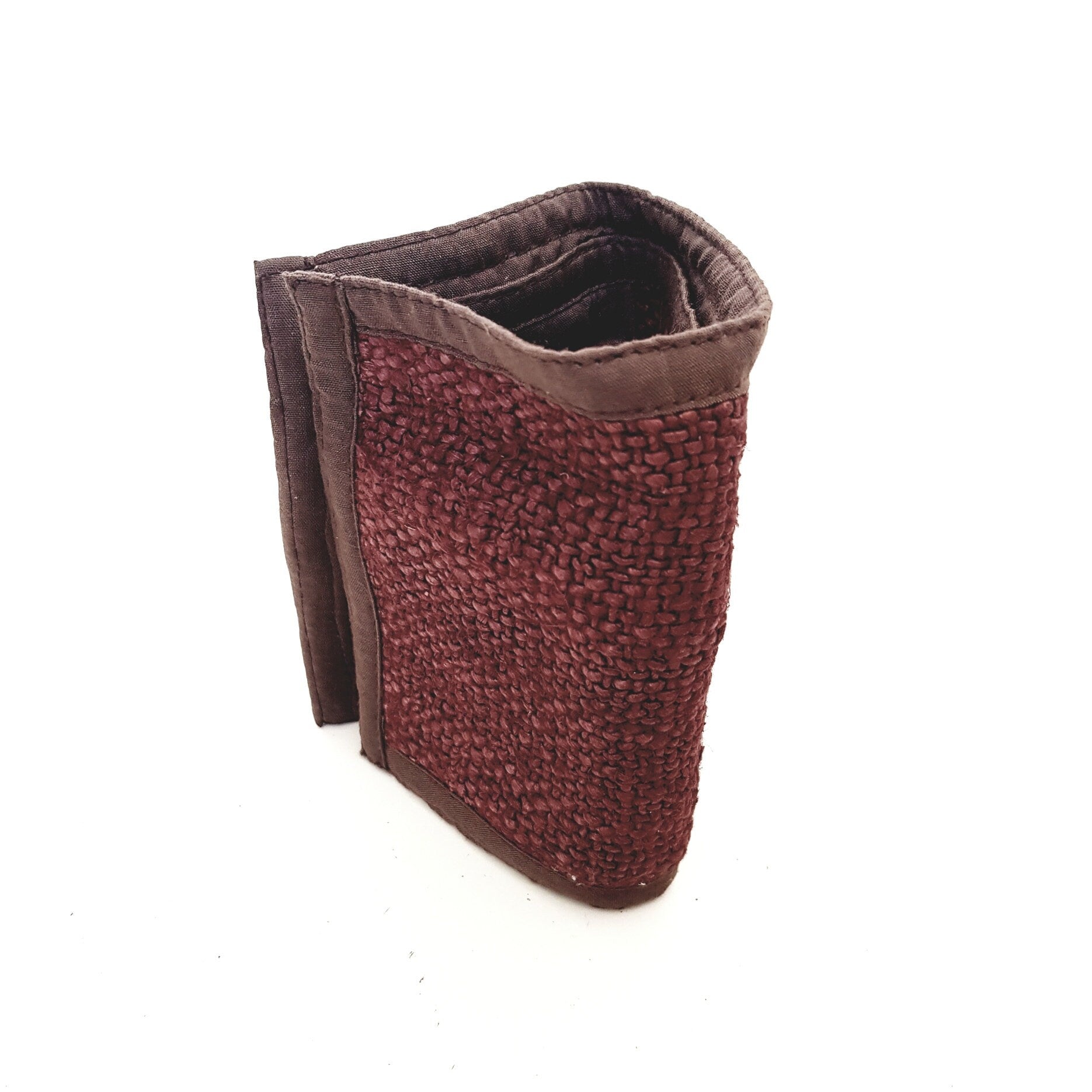 To make this special wallet the Hemp Yarn has been drawn by tooth and spindle method, where the fibres are separated by teeth and is held on to a hand held spindle. It takes 10 days' work to make one kilogramme of yarn. Super durable and hard wearing, coming in a variety of colours this wallet folds nicely to fit in your pocket. There are plenty of inner card pockets and one plastic one to put your loved one's photo in.