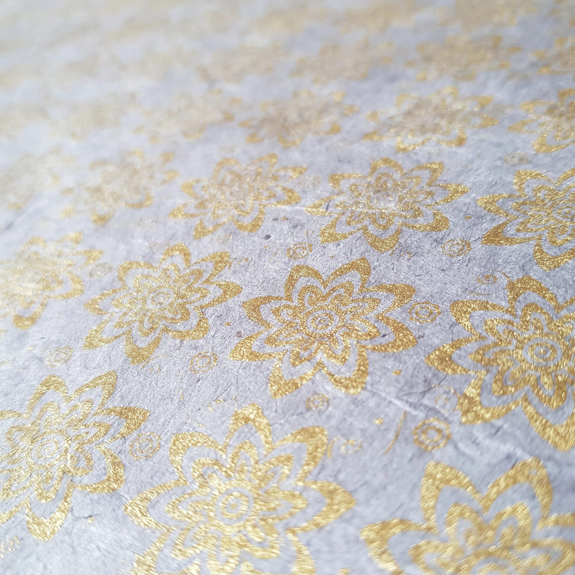 Lokta Paper Bundle - 4 Large Sheets 75 x50cm - Flowers of Gold Silk Screen Collection