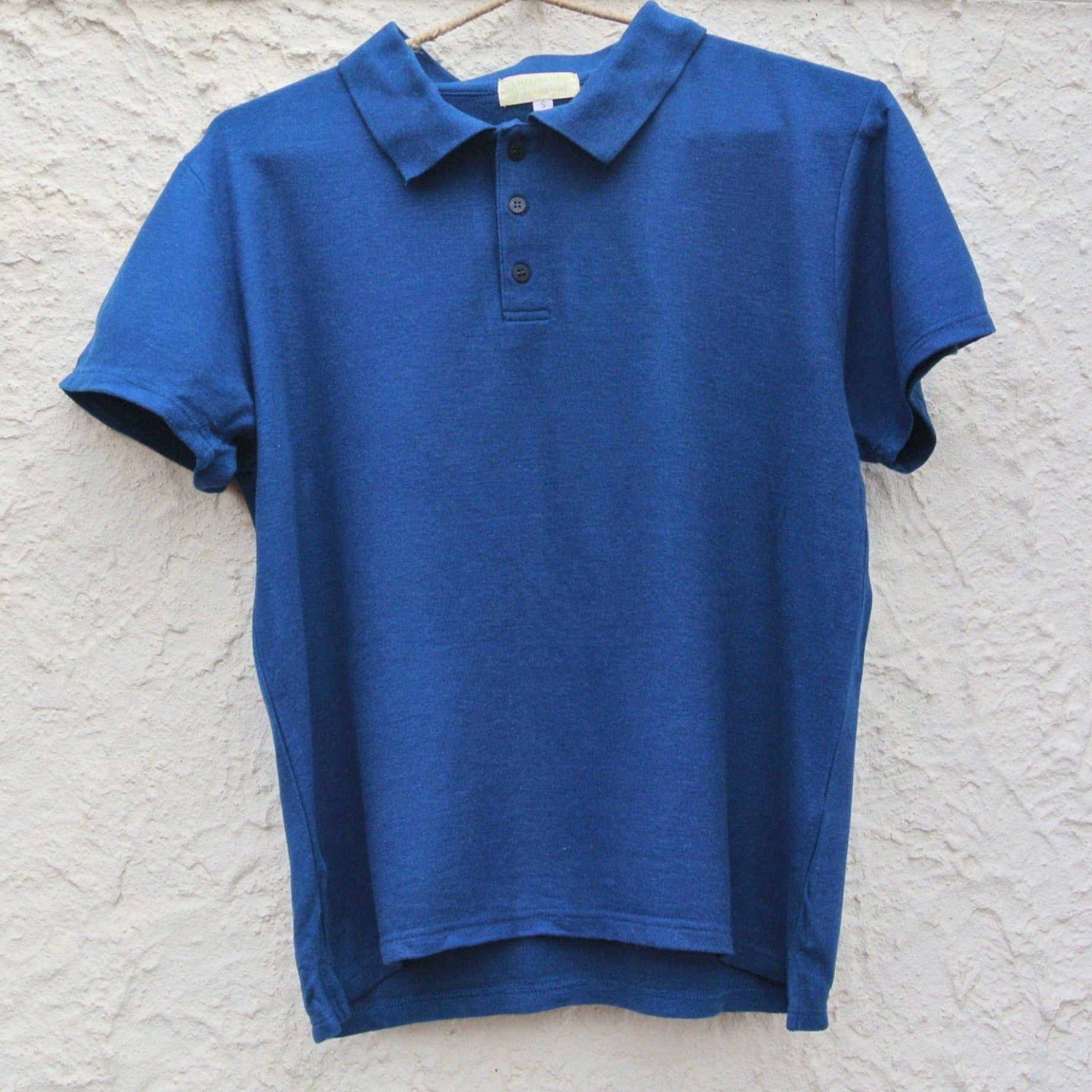 Men's Bamboo Polo Shirt in Plain Marina Blue. Soft & Breathable.