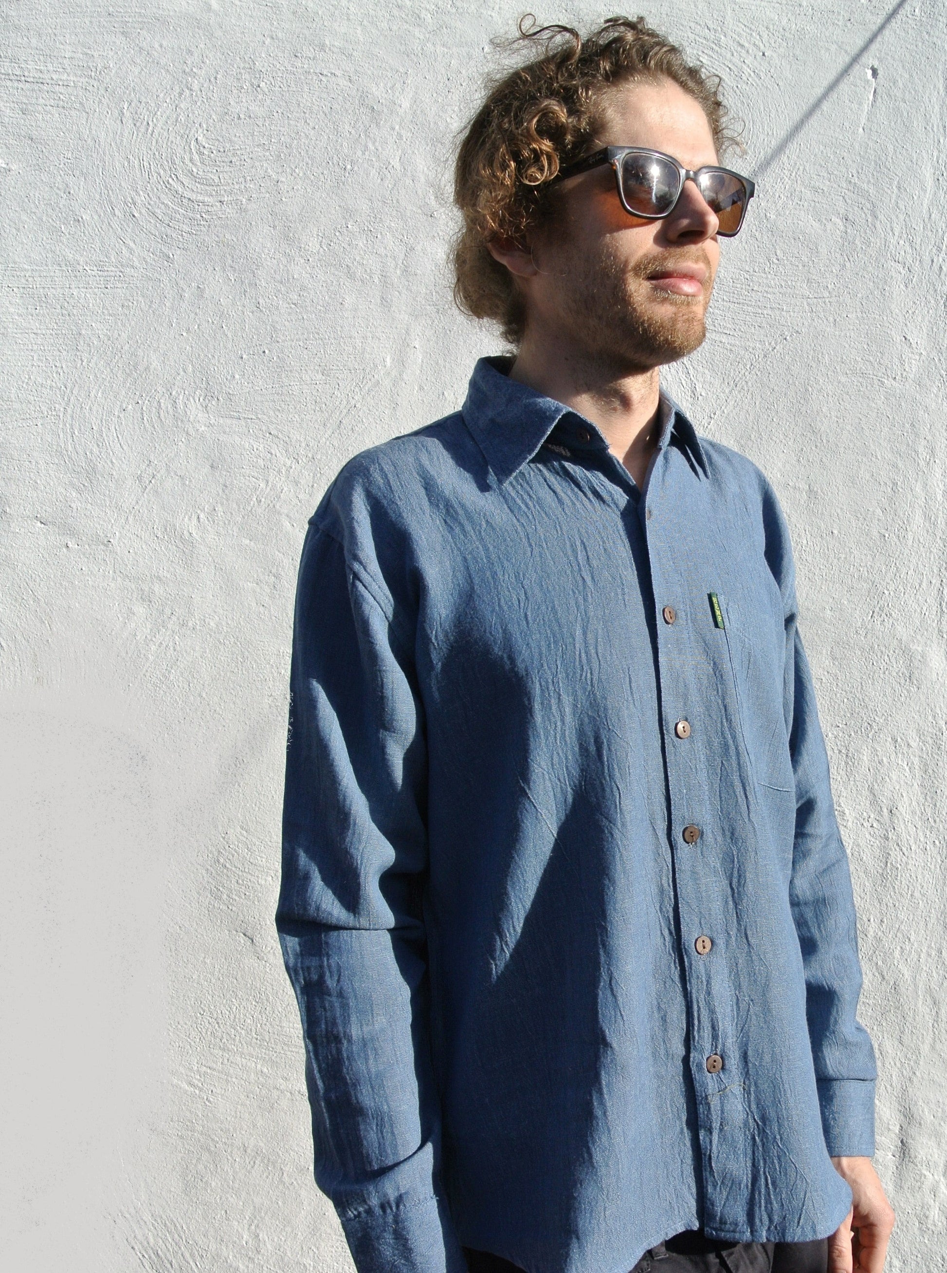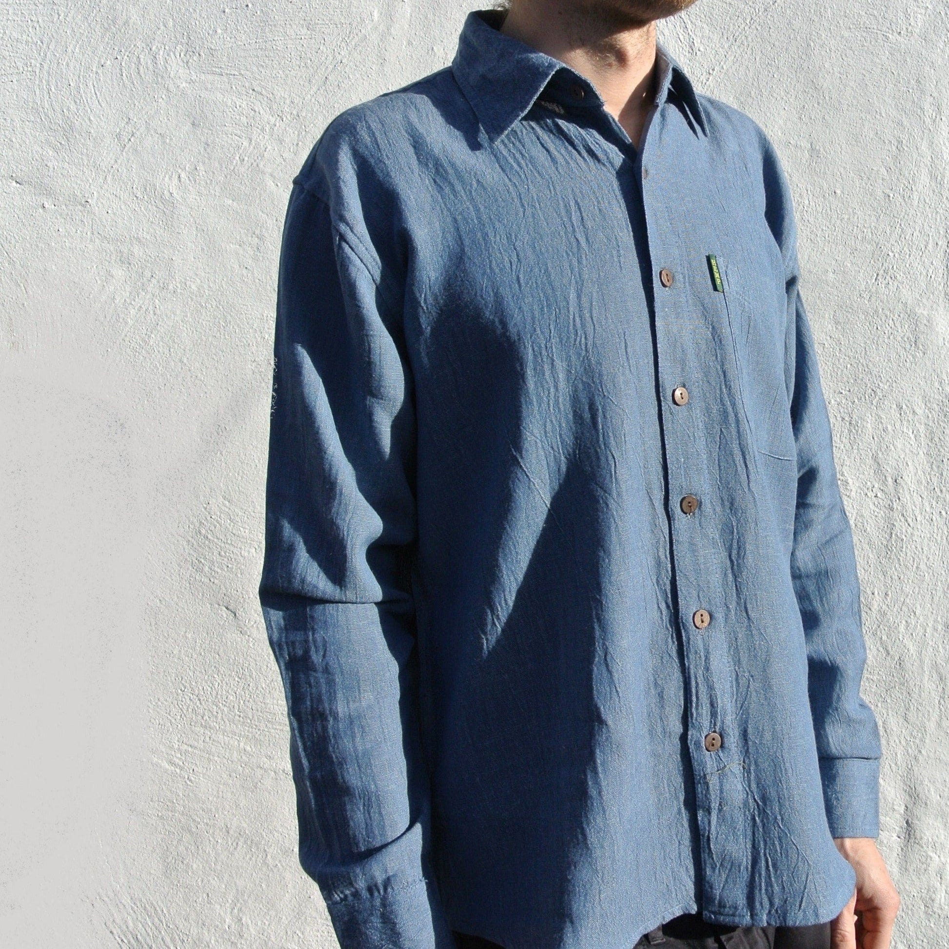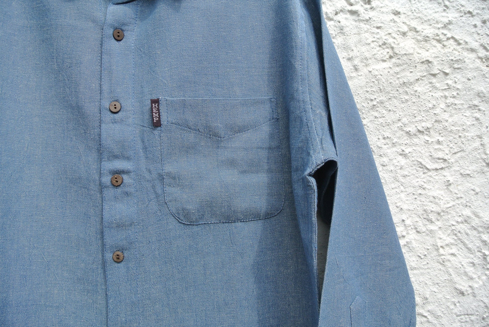 This shirt is made in a regular fit, with classic collar style, long sleeved. Perfect for everyday wear, really soft and comfortable to wear, this beautiful hemp shirt is made in a denim blue. Finished with coconut buttons and a pocket on the left chest. Machine wash warm.
