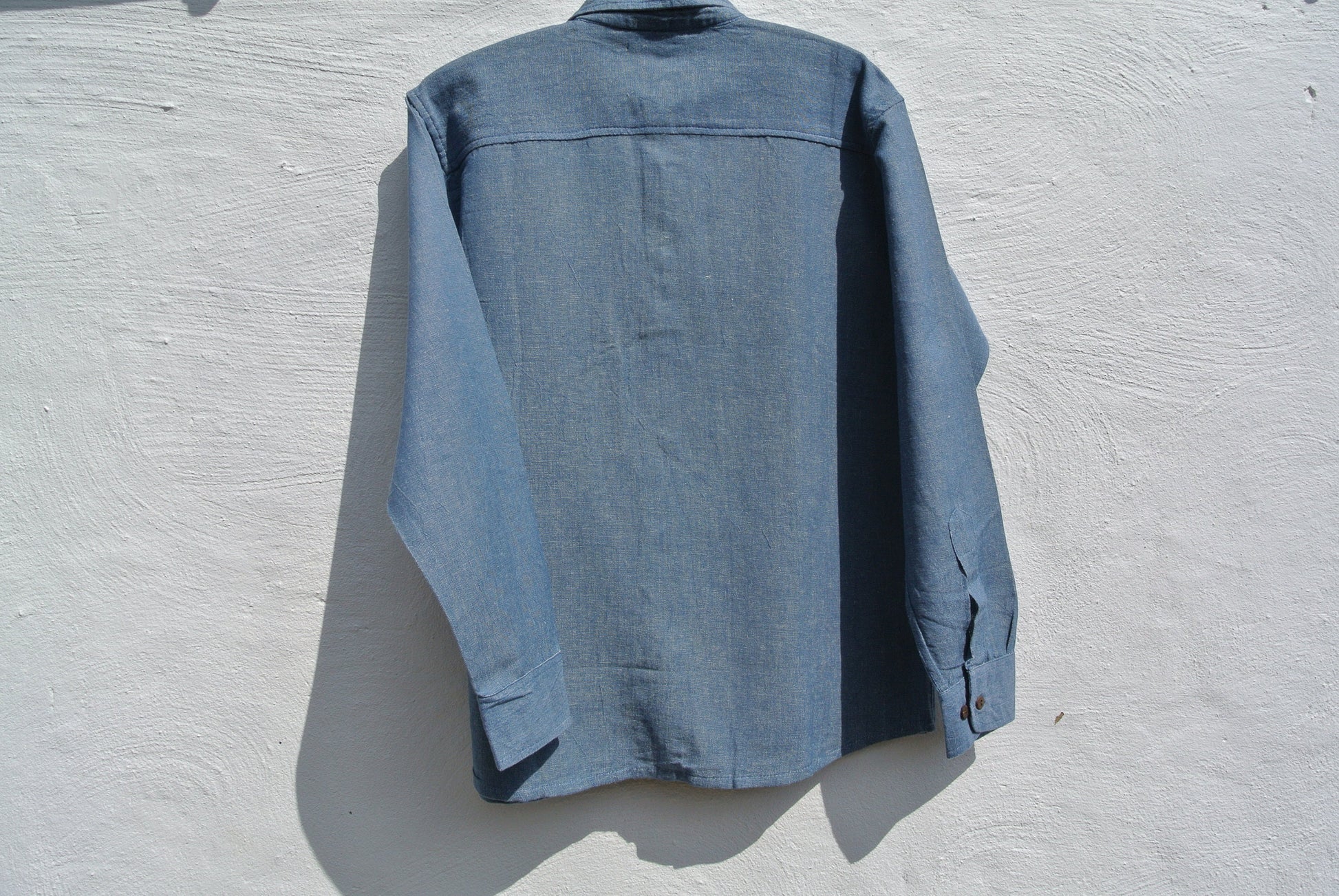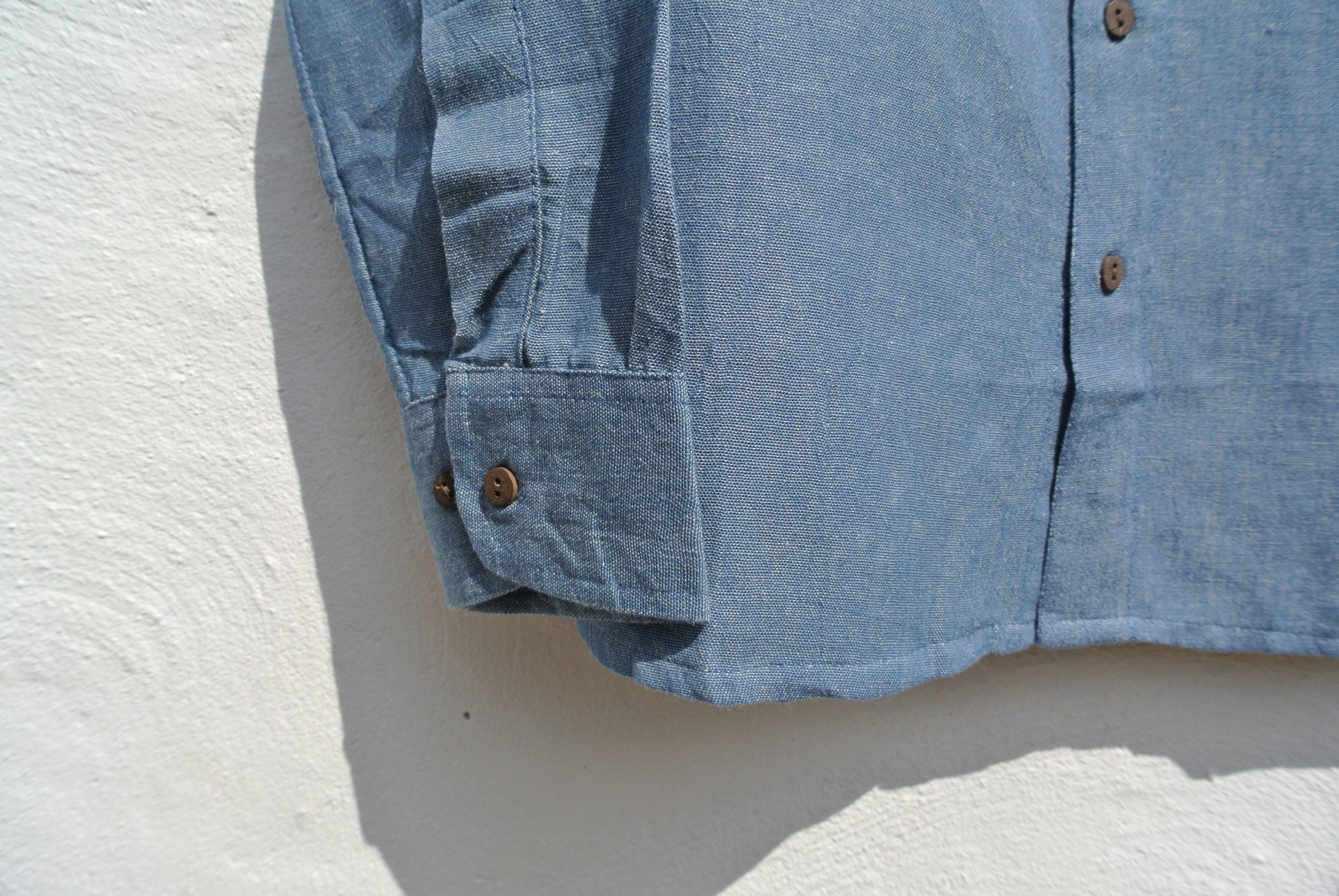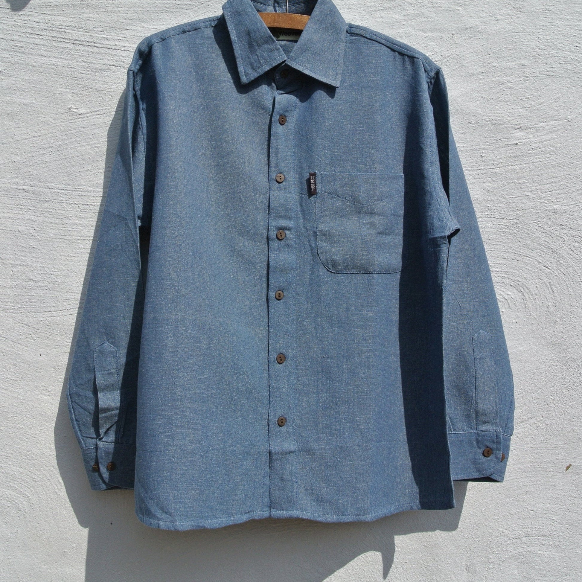 This shirt is made in a regular fit, with classic collar style, long sleeved. Perfect for everyday wear, really soft and comfortable to wear, this beautiful hemp shirt is made in a denim blue. Finished with coconut buttons and a pocket on the left chest. Machine wash warm.