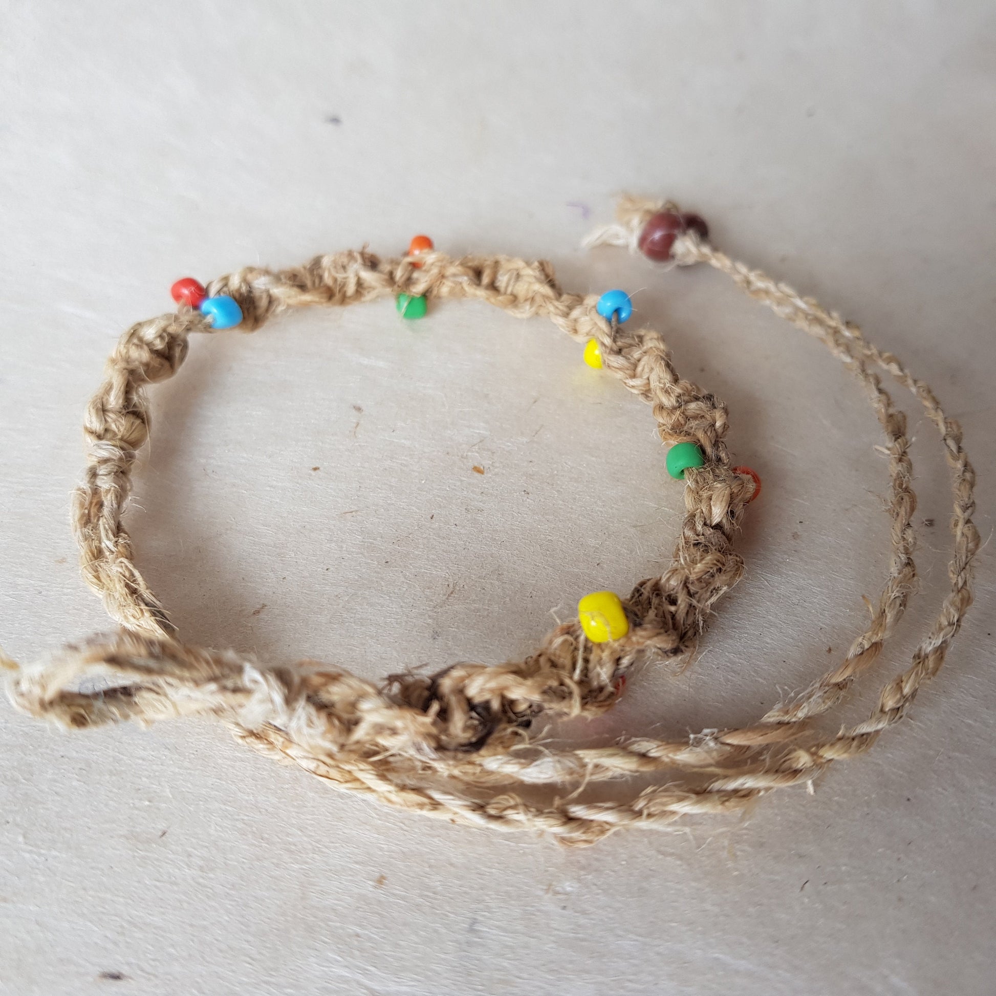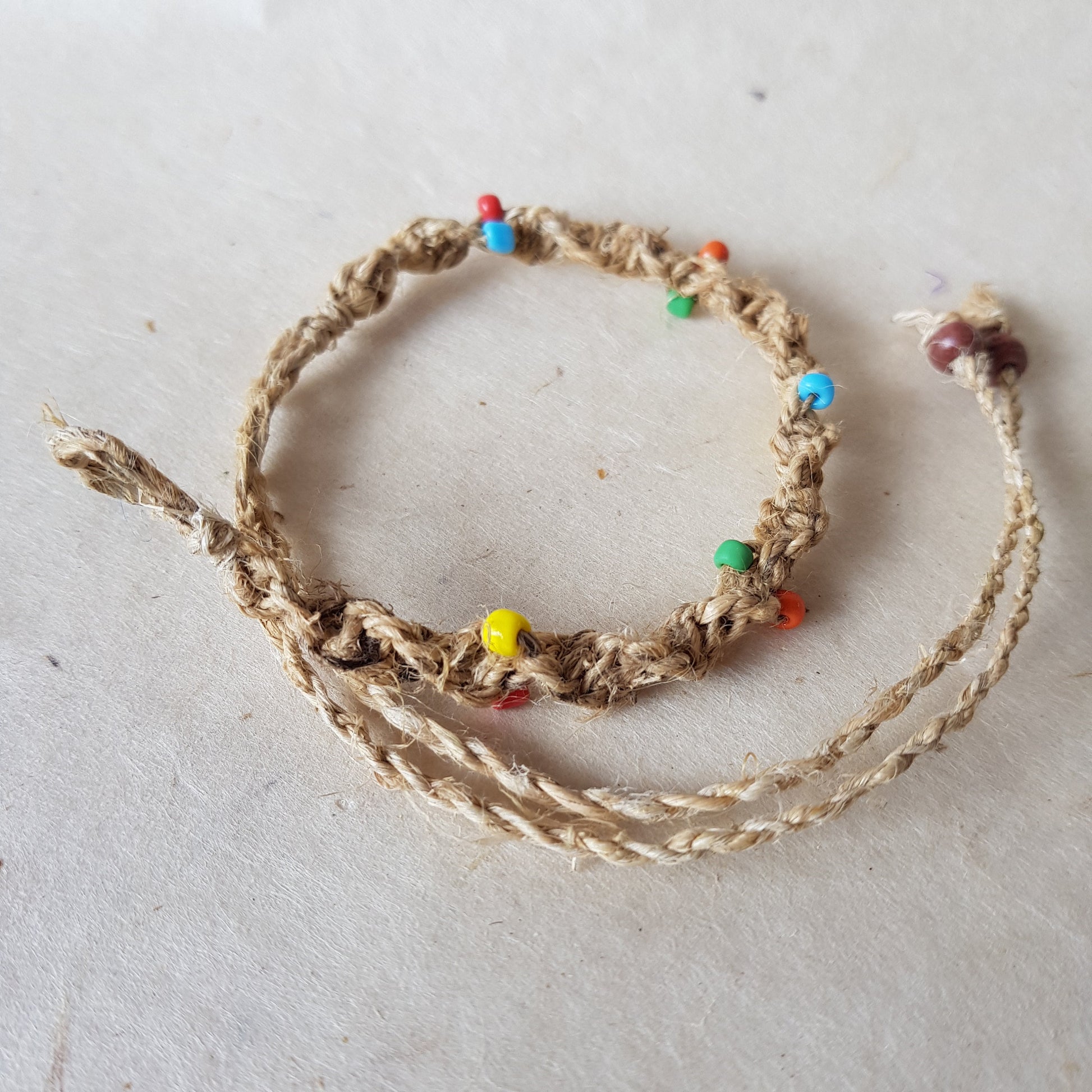 Natural Hemp Twisted Cord bracelet with colourful beads