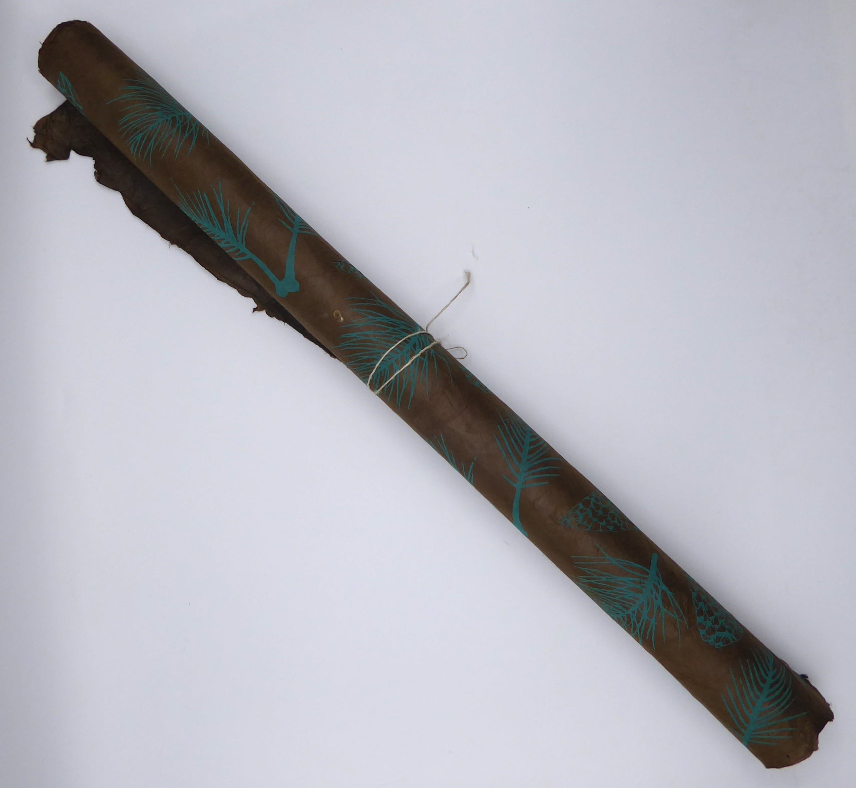 Living Traditions & Wildcrafting… For over 1000 years handmade paper has been produced in the mountainous area of Nepal. The raw material is collected in the wild, taking care not to disturb the plant's roots. The bark of the Daphne Cannabina or Daphne Papyracea bush, locally know as ‘Lokta’ is used for paper making. The bark gathered at high altitudes of 6500 to 9500 feet is carried down to villages where local paper-makers clean and boil it twice. The boiled bark is beaten with wooden mallets, producing a soft pulp which is poured over screened wooden frames floating in a pond, and spread evenly by gently shaking. The frame is then removed and dried in the Himalayan sunshine and the resulting paper peeled off the frame. After harvesting, the Lokta bush naturally regenerates, reaching full maturity again in six to seven years, thus preserving the fragile forest ecology of Nepal, as well as giving continued work to the many mountain villages. It is entirely handmade.