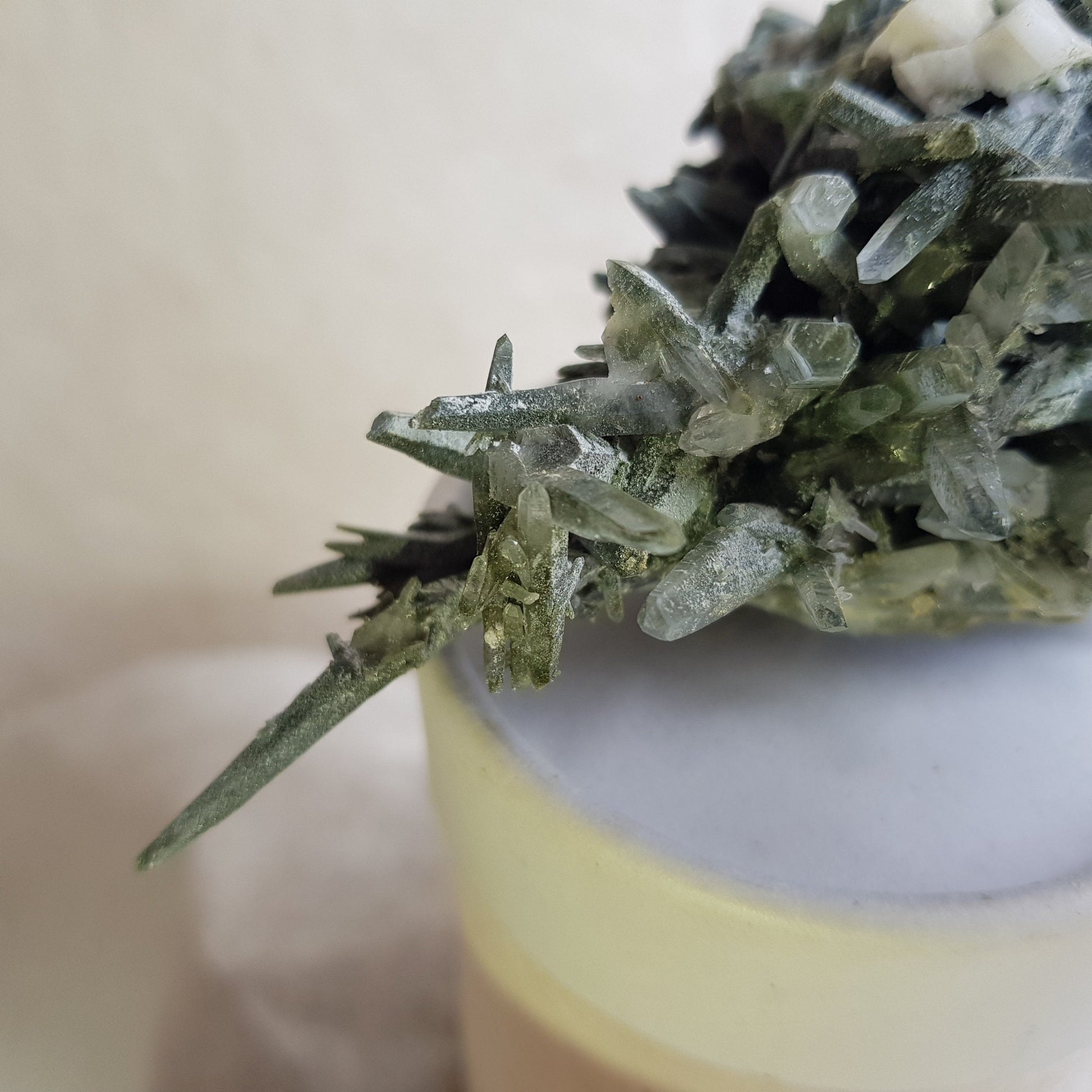 Stunning Quartz crystal from Ganesh Himal, Nepal. Handpicked and carried down the mountain on foot, sourced directly. Packaged in a handmade lokta paper box wrapped in upcycled newspaper. Everything has some kind of life and energy in it, crystals however are renowned for being incredible storehouses of energy, millions of years in the making deep underground! This particular crystal is found in Ganesh Himal, a beautiful mountain in the Nepali Himalayas. The crystal embodies a unique vibration from this mountain. *Please be aware that although I take great care in packaging and posting out these crystals, there are may smaller crystals (thickness 1mm) a part of the clusters that very fragile and breakages may occur.