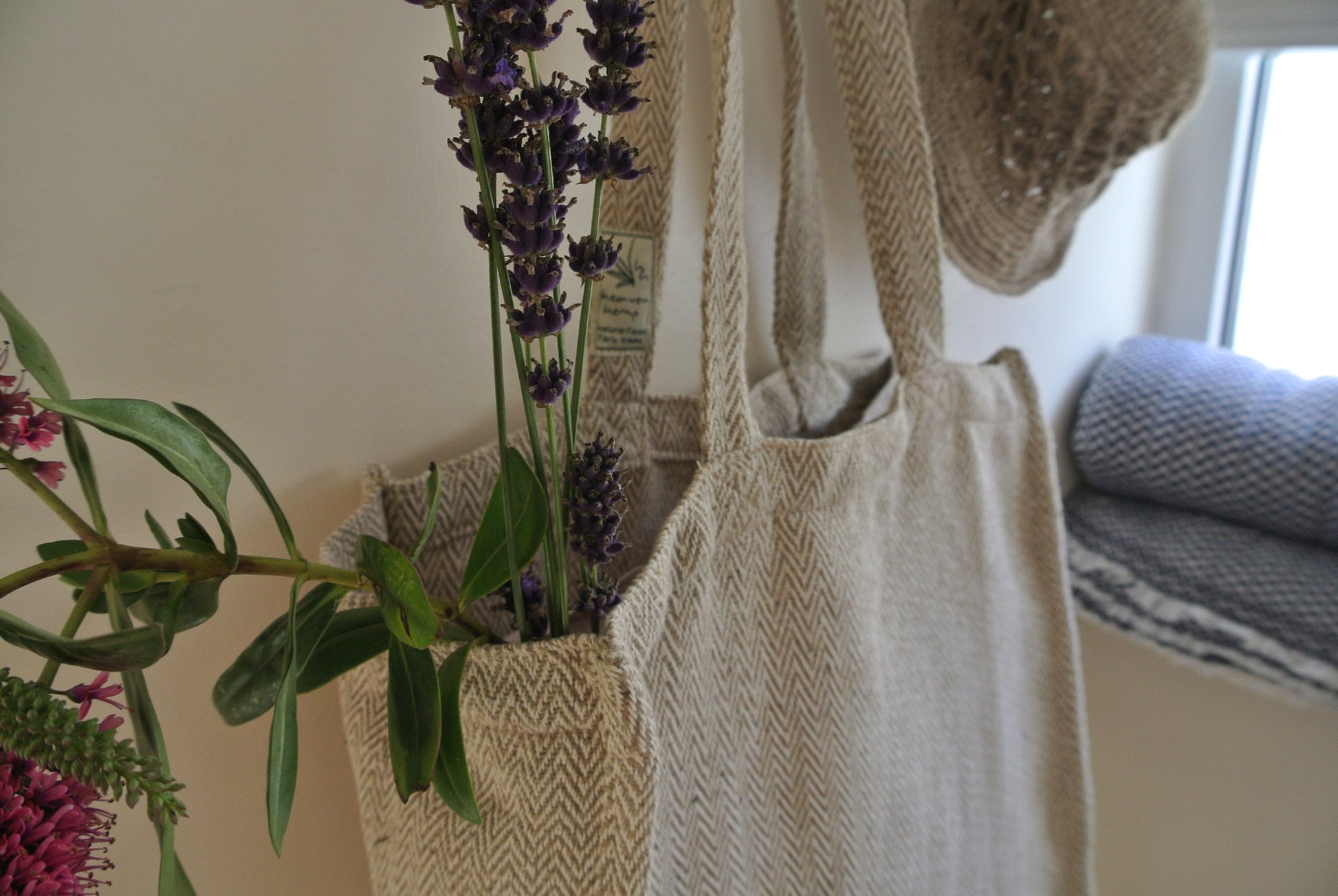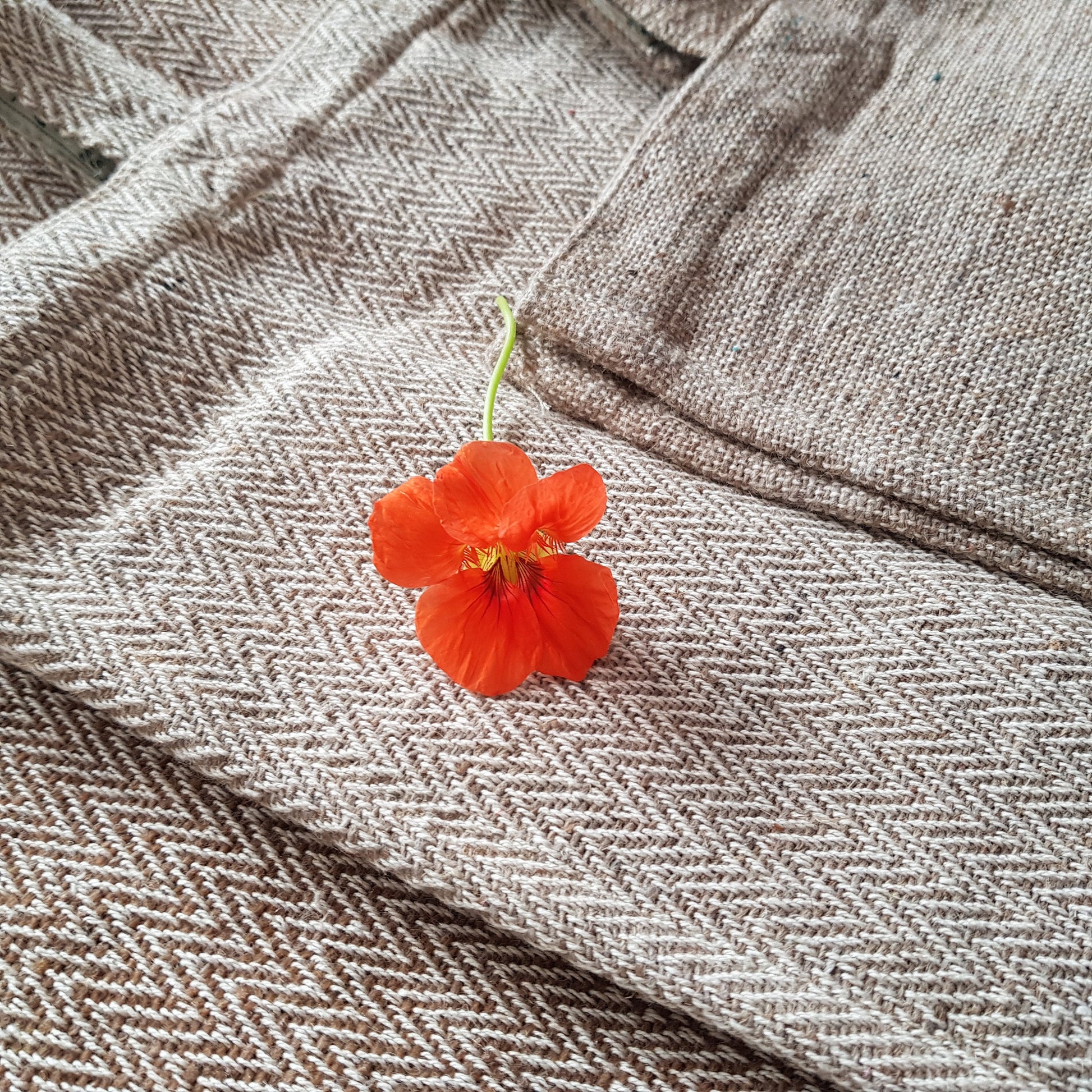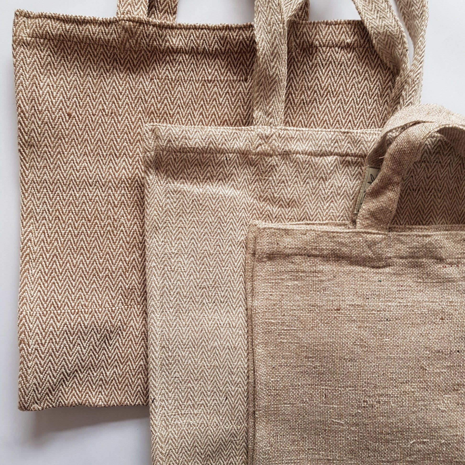 Material: Handmade with handwoven recycled hemp and cotton fabric, woven on a traditional handloom in the Nepali Himalayas. Recycled hemp is brushed and then carded and woven together with cotton in a Herringbone or a plain weave.