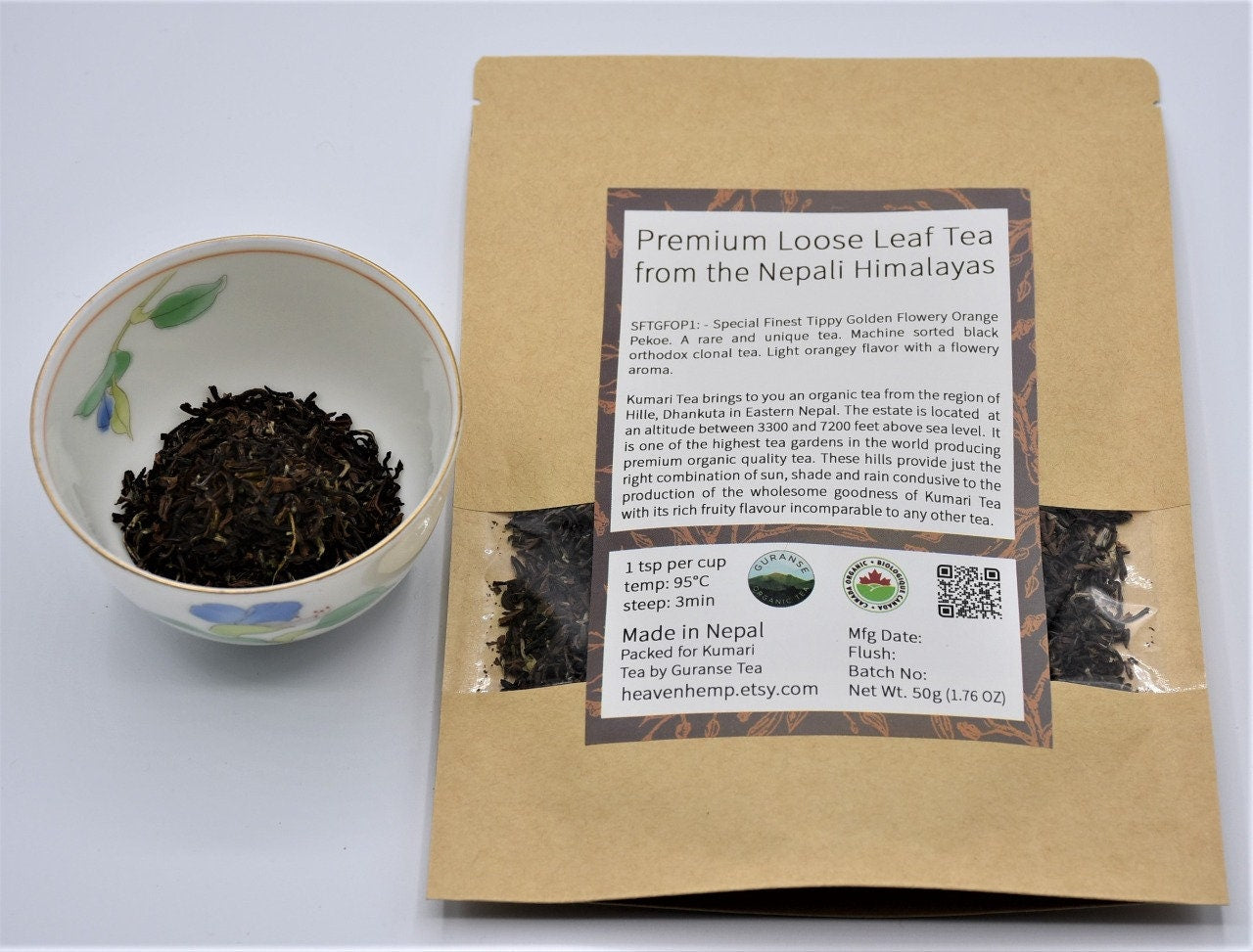 SFTGFOP-1 Black Tea - Special Finest Tippy Golden Flowery Orange Pekoe. Premium Loose Leaf Organic Tea from the Nepali Himalayas