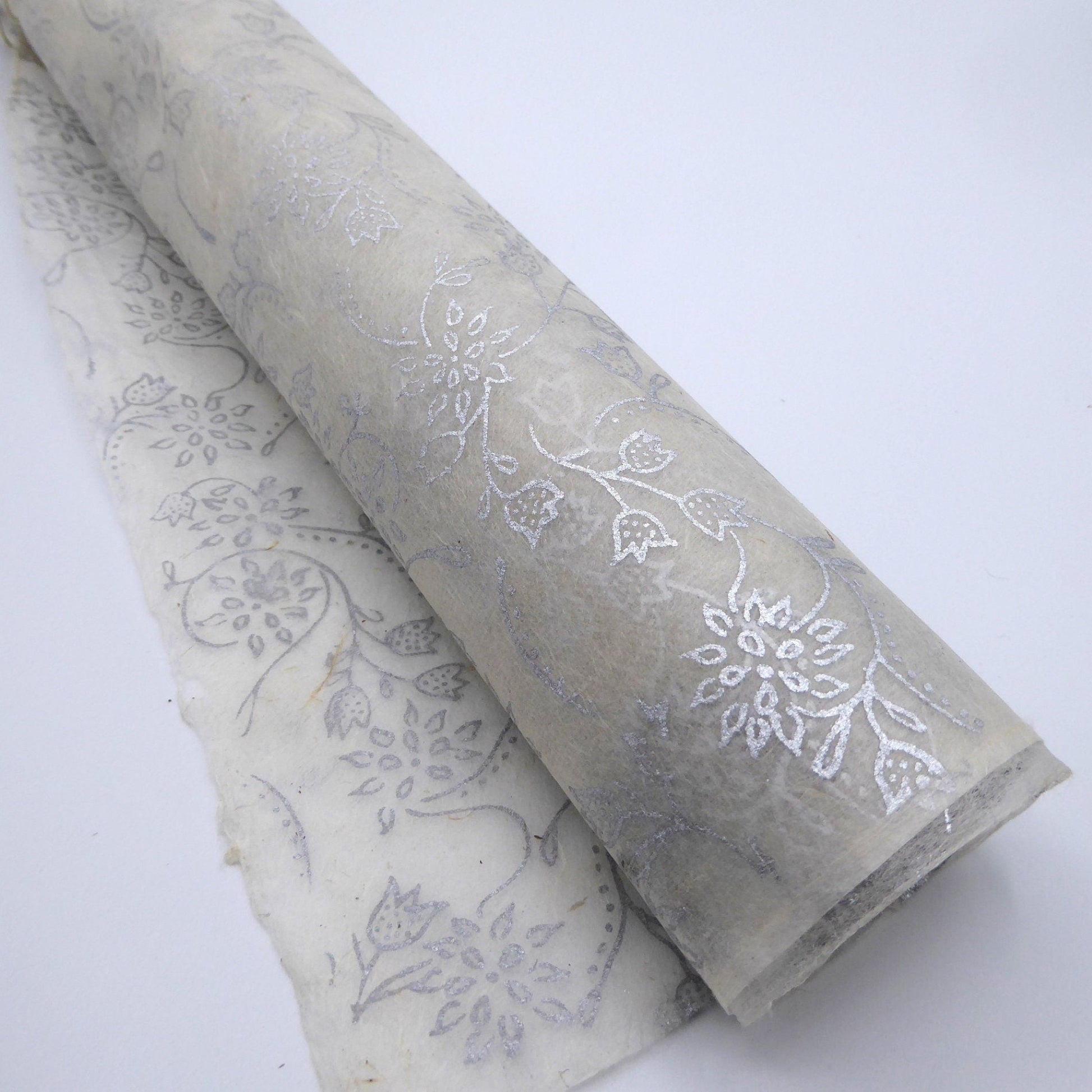 Silver Floral print on Hemp Tissue Paper