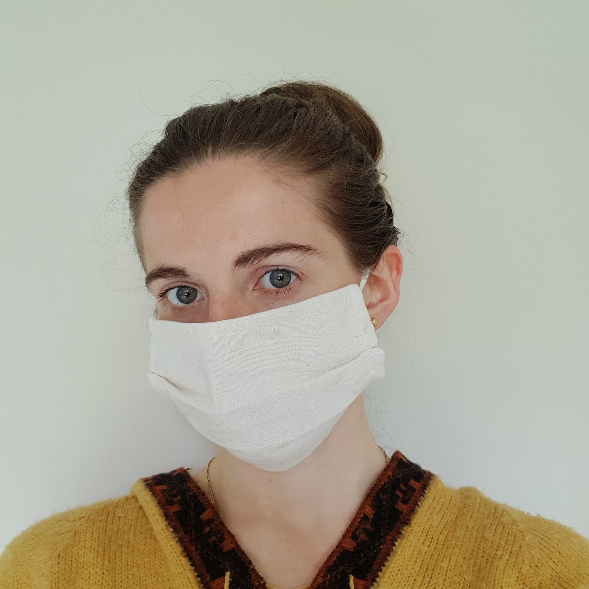 Hemp 55% Cotton 45% 2 layer Face Mask. Soft and comfortable for everyday wear with elastic bands for ease of use and fit. The design is simple and the material is dye-free, vegan friendly and bio-degradable.