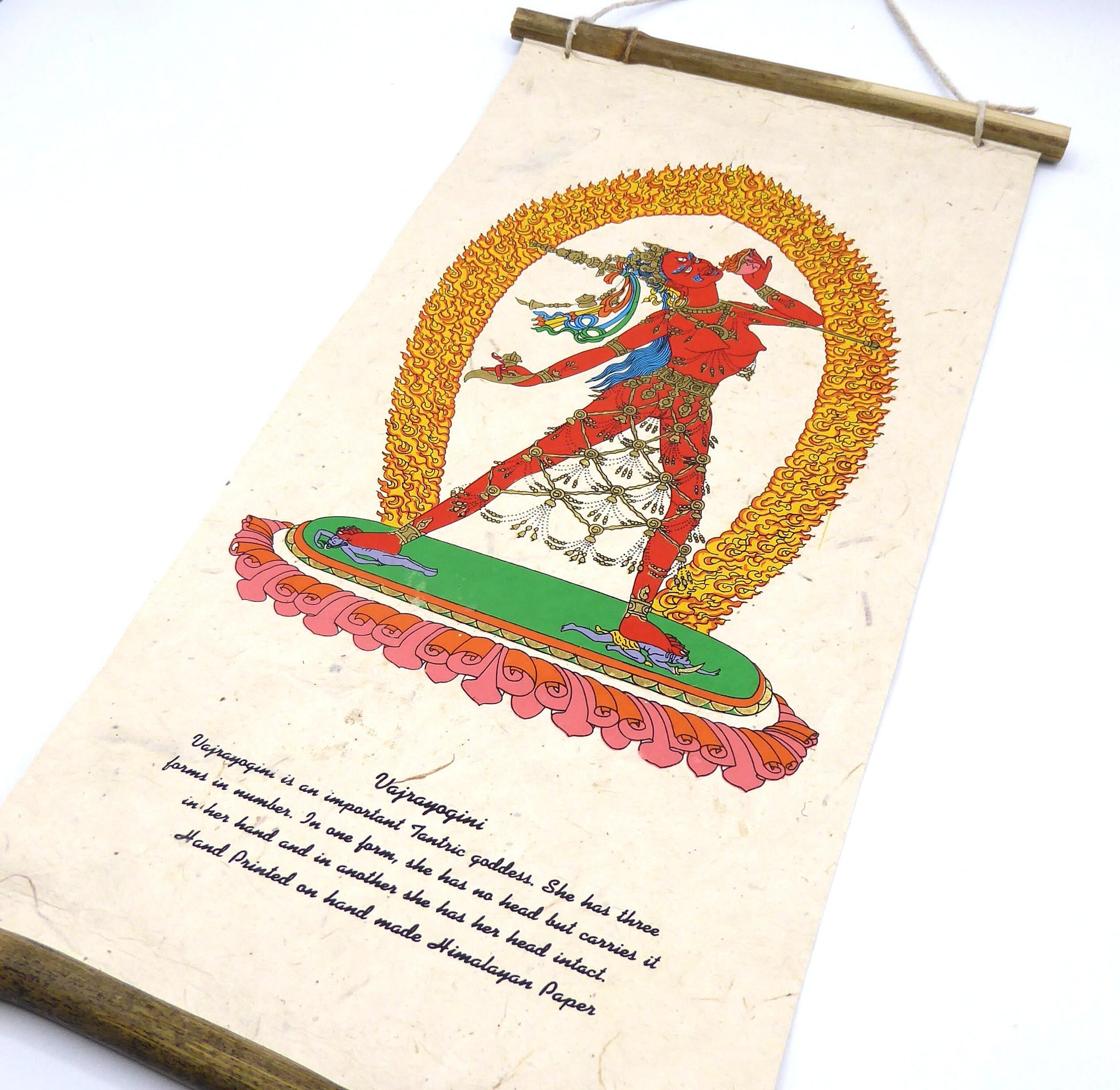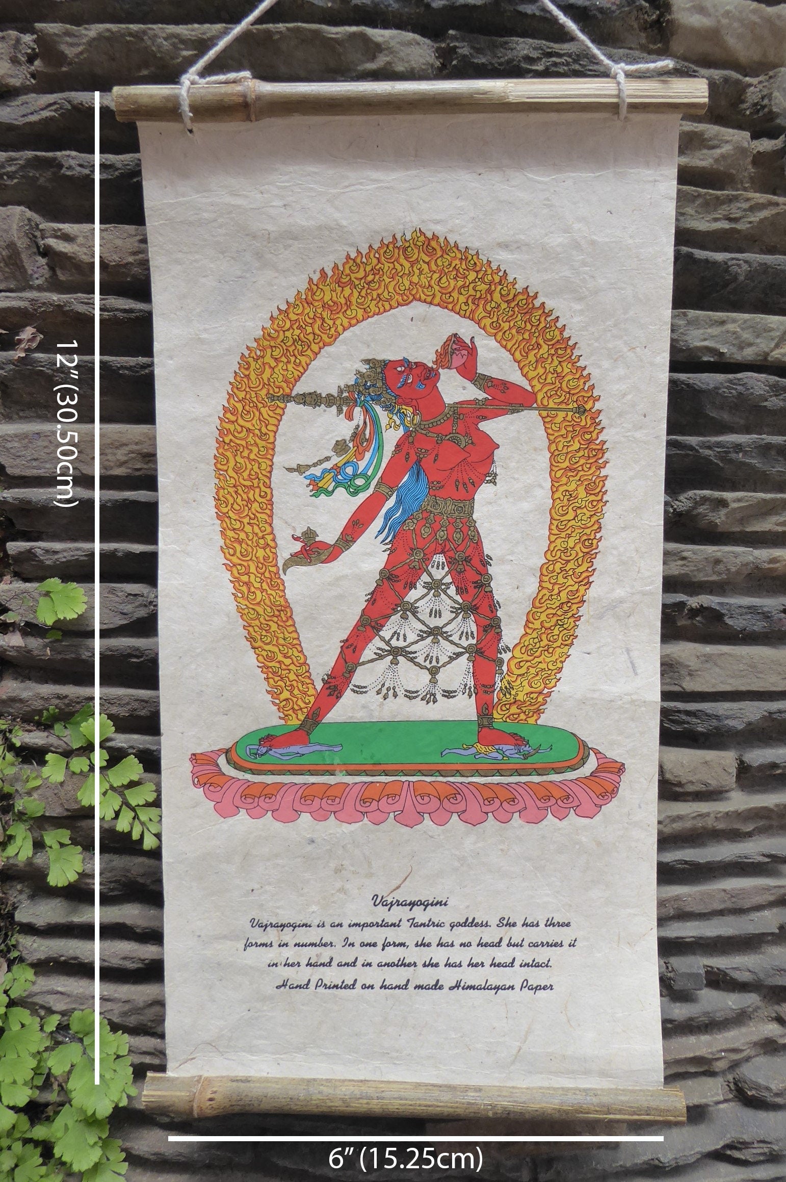 The designs have been hand-stamped in layers for each colour onto tree free lokta paper and attached to bamboo sticks to replicate a scroll, adding to it's charm as well as the weight of the picture making it ready for hanging. Perfect to hang in your yoga studio or place of therapeutic practice at home. (Therapy, Yoga, Spa, Pilates, Meditation, Prayer Room etc.)