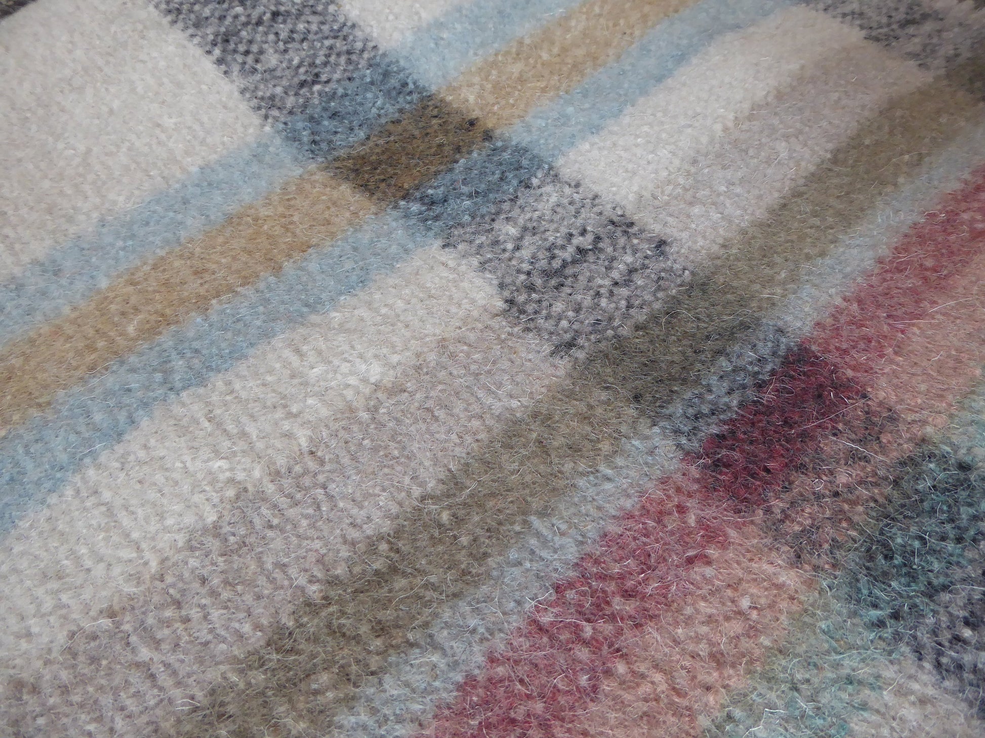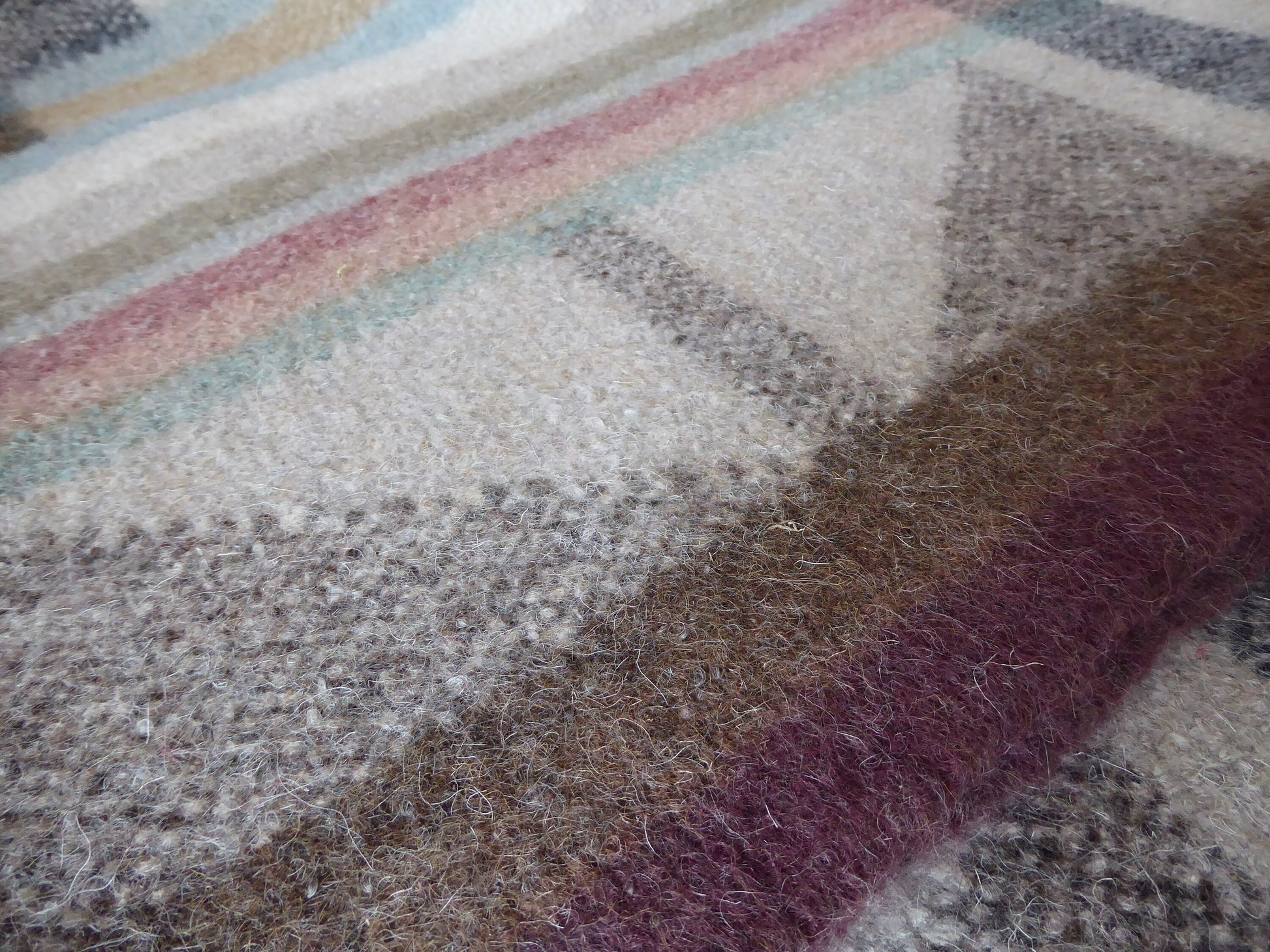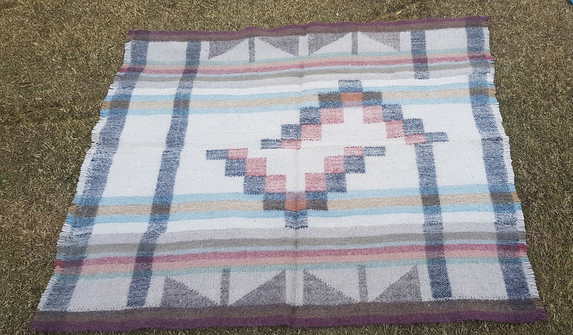This handmade woolen rug comprises of 5 layers of handwoven woolen cloth that have been stitched together and then boiled, shrinking and felting the wool making a very warm and cosy rug. It is thick, durable and washable and made entirely of Himalayan sheep wool.