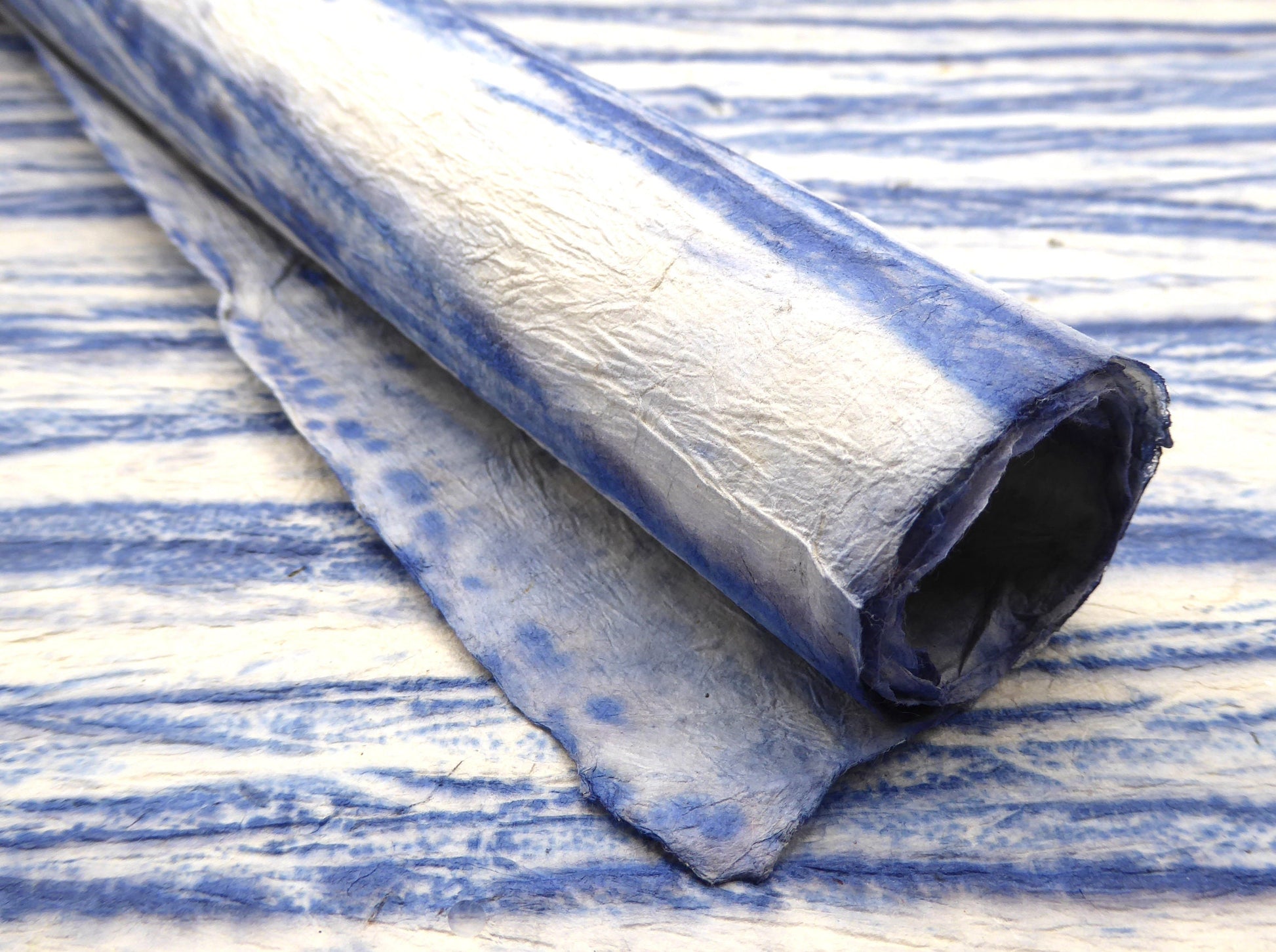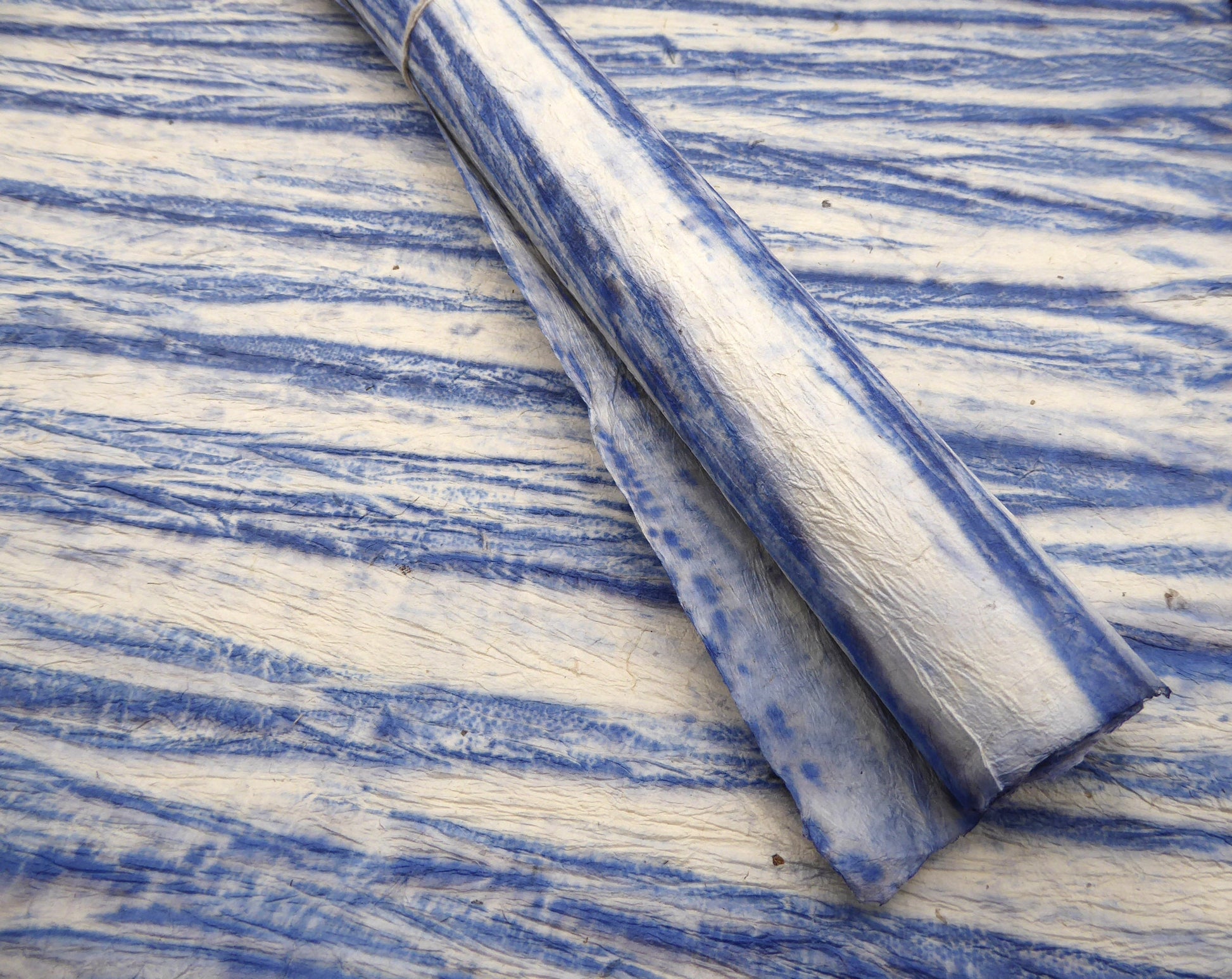 Crushed Blue Vegetable Dyed Lokta Paper Handmade in the Himalayas. Tree Free & Sustainable