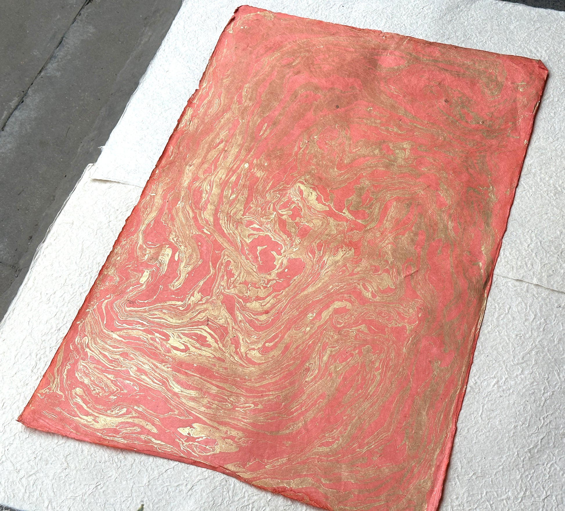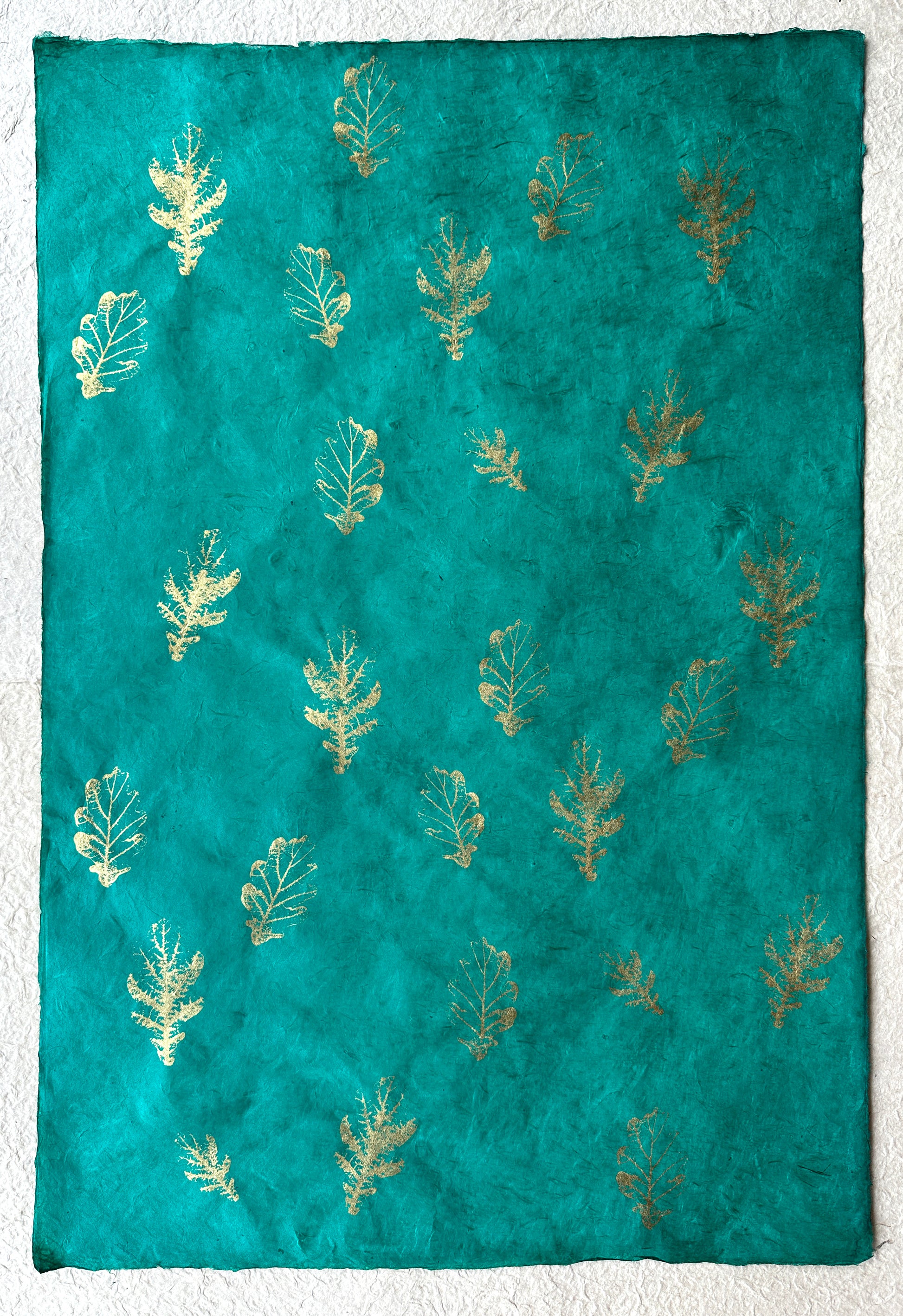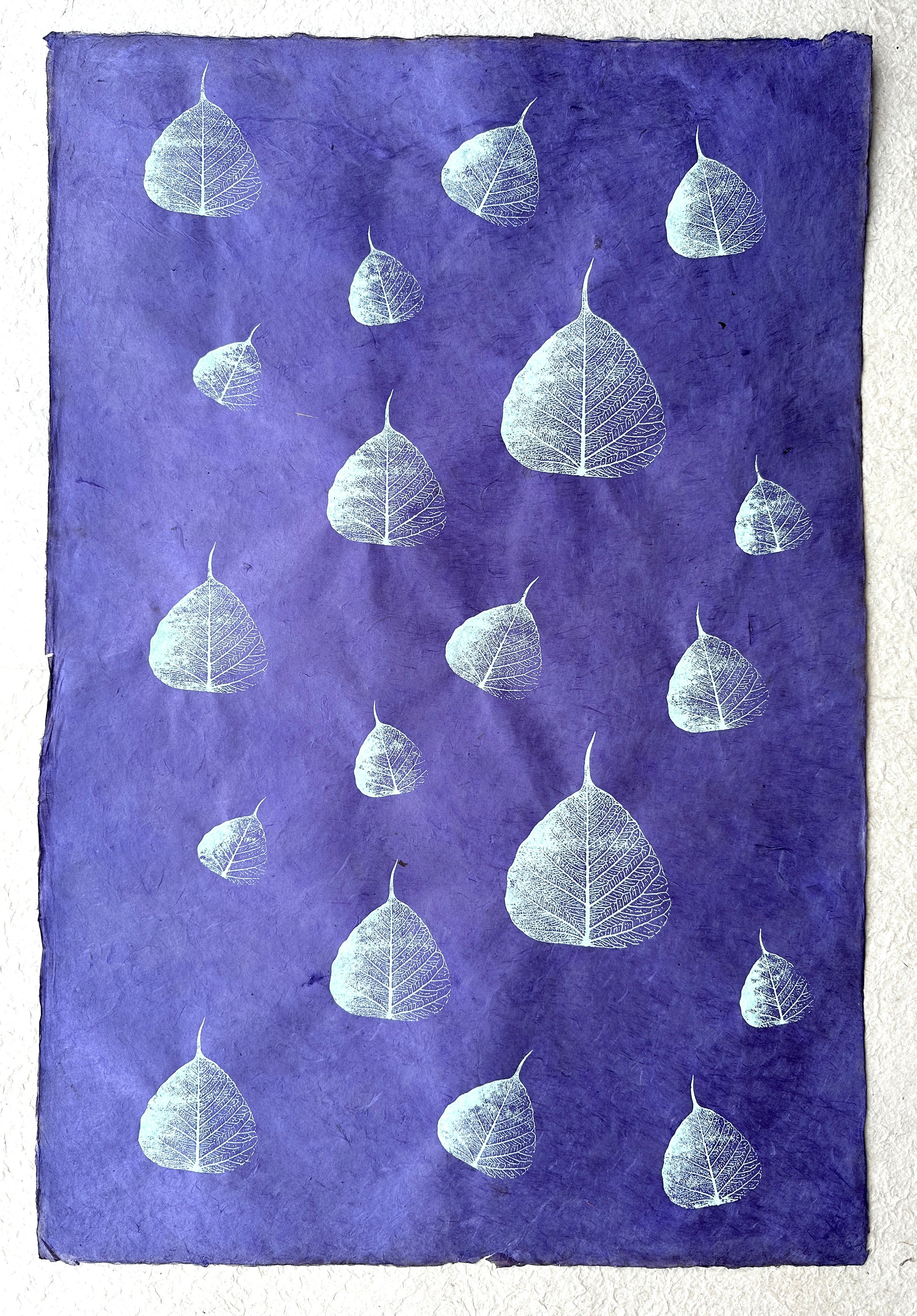 This bundle includes one sheet of each vintage handmade paper prints, totalling six sheets in one bundle; 1. Imprints of Oak - peach 2. Imprints of oak - green 3. Violet Bodhi 4. Blue Bodhi 5. Imprints of Maple 6. Peachie Marble